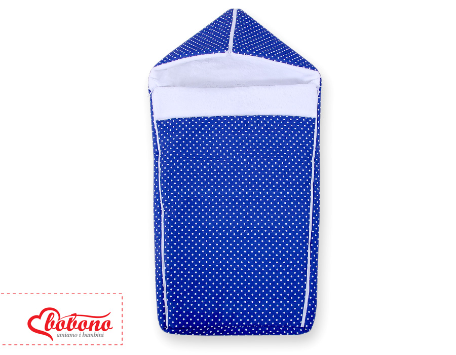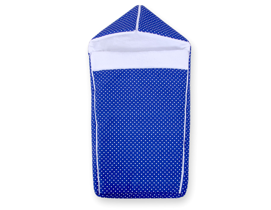 Kinderwagen Schlafsack - Dunkelblau-Punktemuster Ein weicher, flauschiger, großer und bequemer Kinderwagenschlafsack/Fußsack für kältere Tage aus 3 Materialschichten hergestellt. Garantiert eine lange Nutztung.