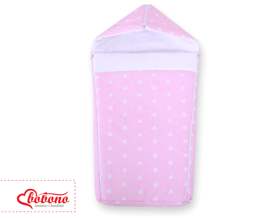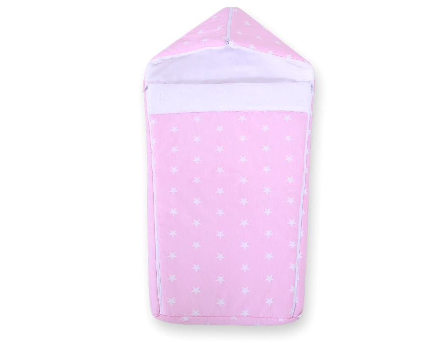 Kinderwagen Schlafsack - Rosa Sternchen Ein weicher, flauschiger, großer und bequemer Kinderwagenschlafsack/Fußsack für kältere Tage aus 3 Materialschichten hergestellt. Garantiert eine lange Nutztung.