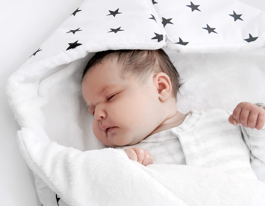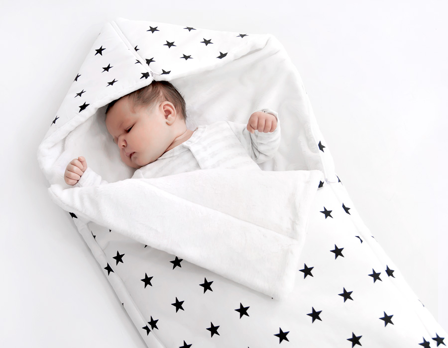 Auf beiden Seiten sind Reißverschlüsse eingenäht. Das ermöglicht ein einfaches herausnehmen des Babys. Zusätzlich schützt eine Kaputze mit einem praktischem Reißvershluss das empfindliche Köpfchen vor Wind und Kälte.