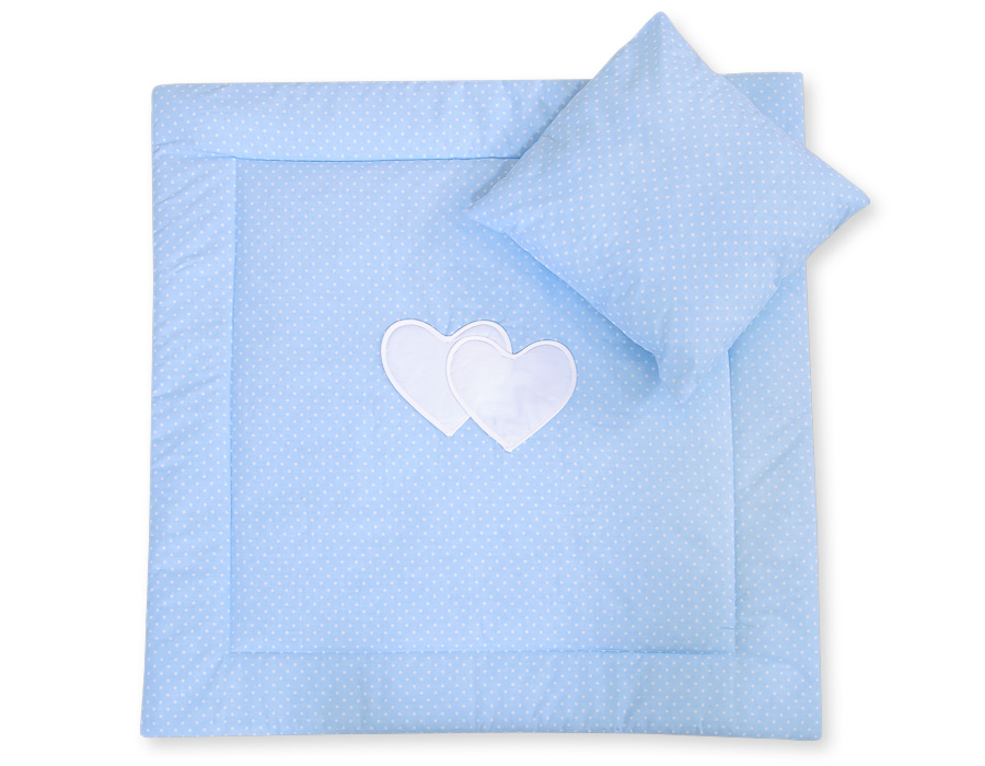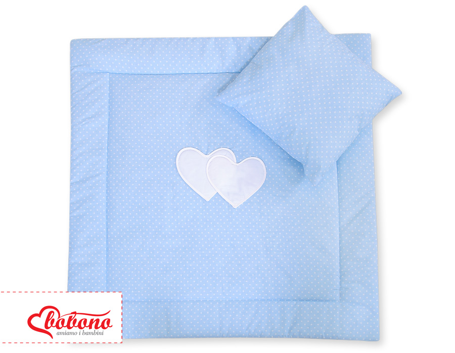 Stubenwagen » Bettwäsche für Babys » Bettwäsche für Babybett HERZEN » Kinderwagen Sets » Kinderwagen Set 2tlg - Hängende Herzen Blau-Punktemuster