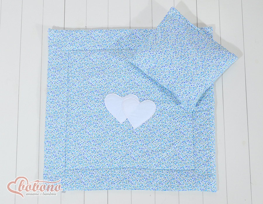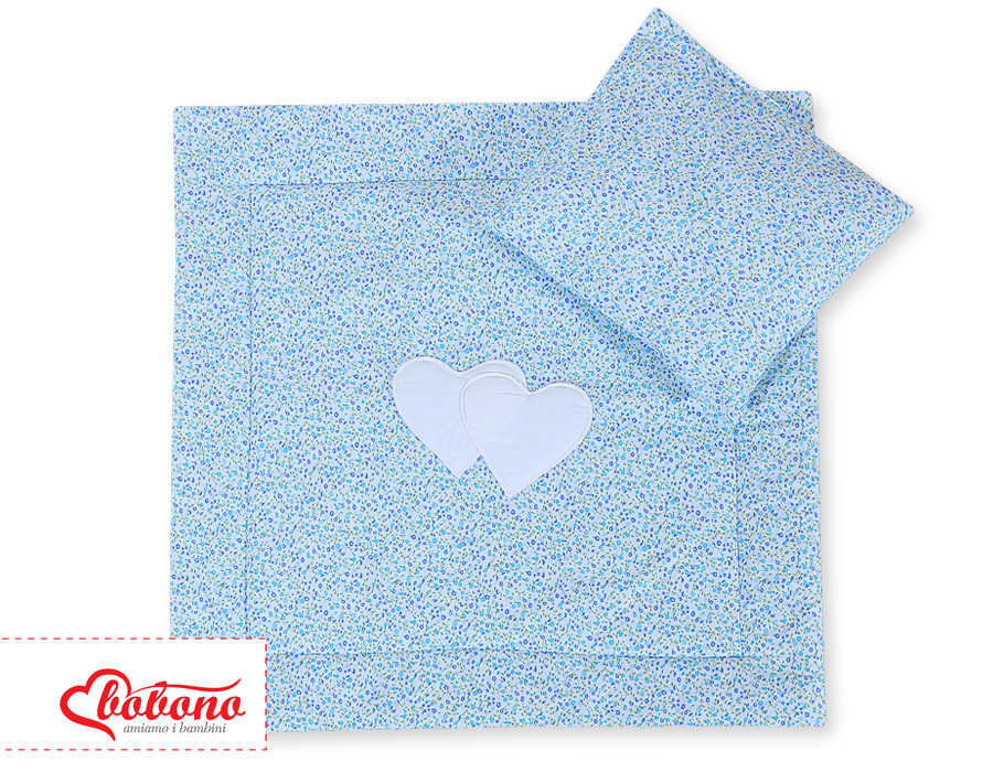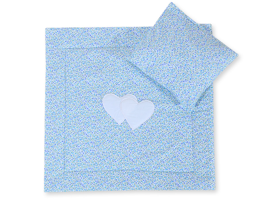 Stubenwagen » Bettwäsche für Babys » Bettwäsche für Babybett HERZEN » Kinderwagen Sets » Kinderwagen Set 2tlg - Hängende Herzen blaue Blümchen