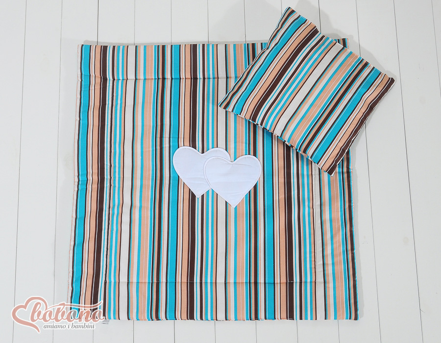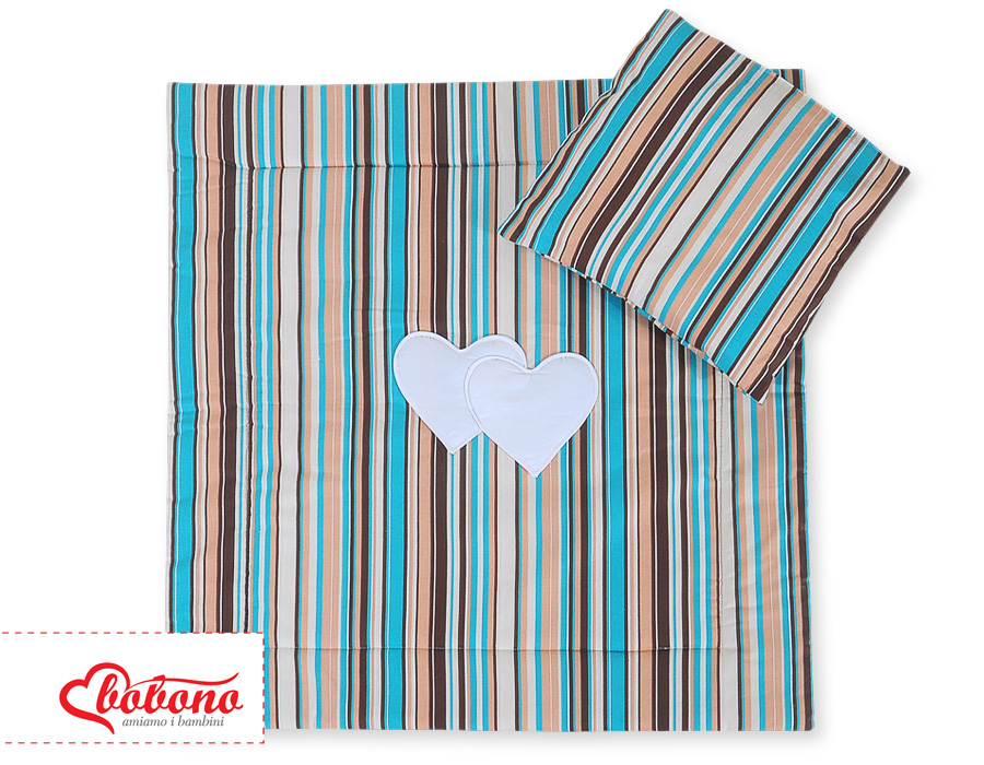Stubenwagen » Bettwäsche für Babys » Bettwäsche für Babybett HERZEN » Kinderwagen Sets » Kinderwagen Set 2tlg - Hängende Herzen braun gestreift