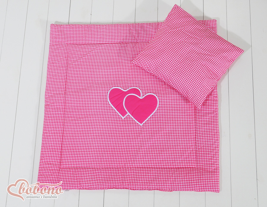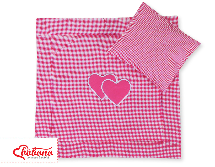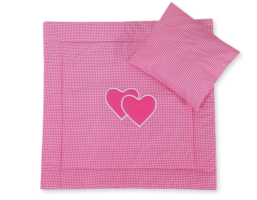 Stubenwagen » Bettwäsche für Babys » Bettwäsche für Babybett HERZEN » Kinderwagen Sets » Kinderwagen Set 2tlg - Hängende Herzen dunkel rosa kariert