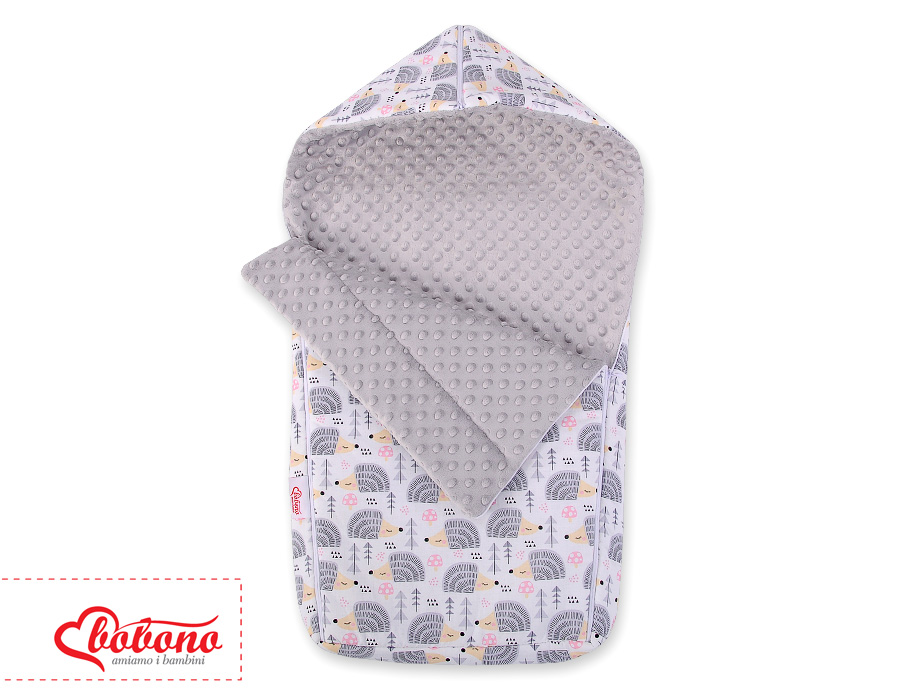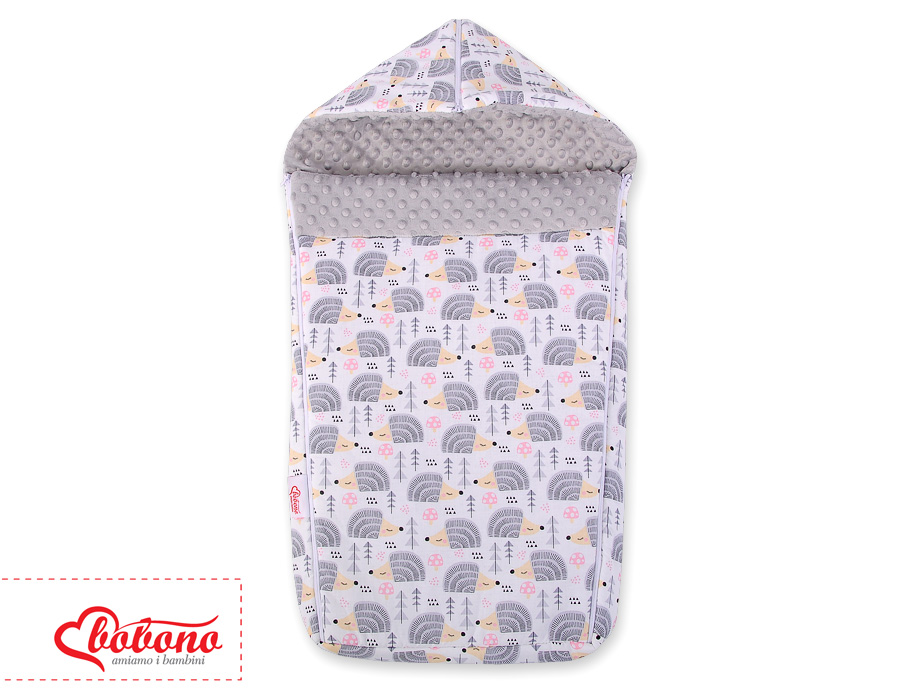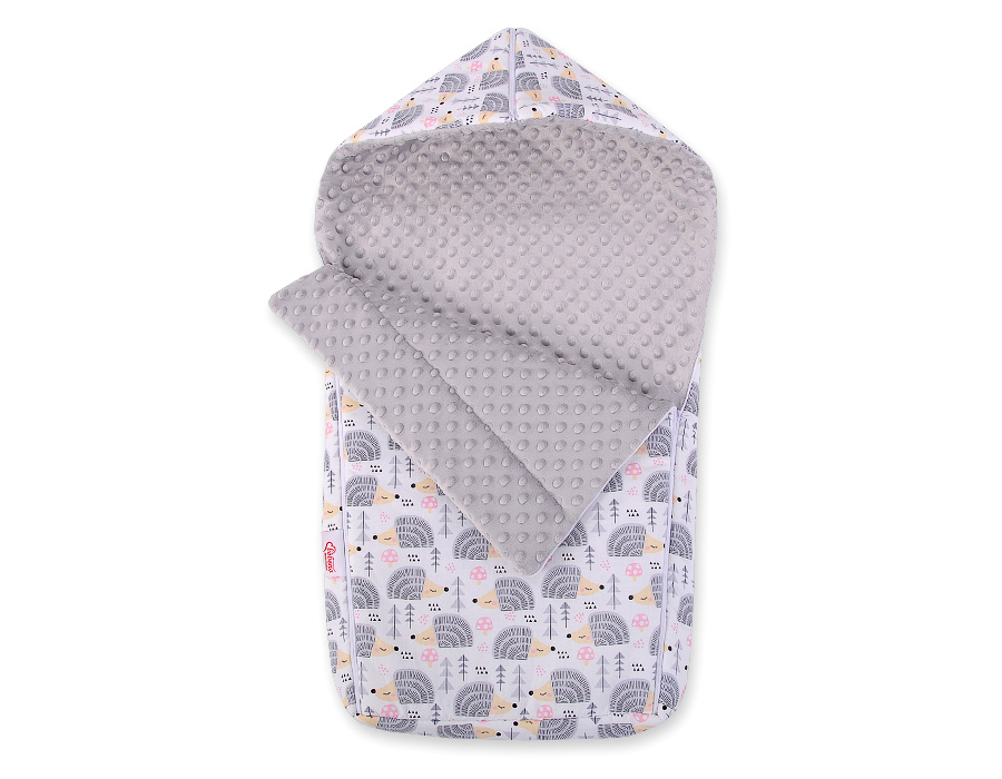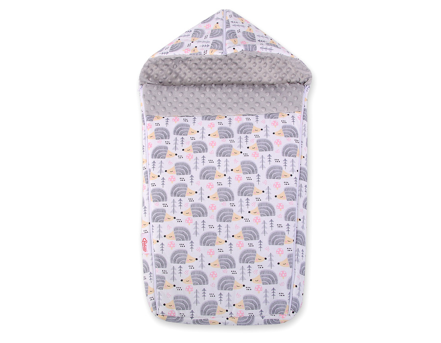 Kinderwagenschlafsack - Igel grau Ein weicher, flauschiger, großer und bequemer Kinderwagenschlafsack/Fußsack für kältere Tage aus 3 Materialschichten hergestellt. Garantiert eine lange Nutztung.