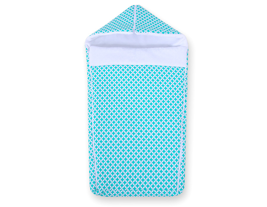 Die Maße - Länge • 84 cm (+/ - 2 cm) Breite an der Füßseite • 35 cm Breite oben • 44 cm Länge der Kaputze • 22 cm Minze-Blumenmuster Kinderwagenschlafsack
