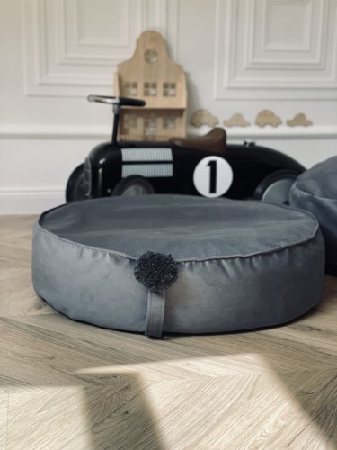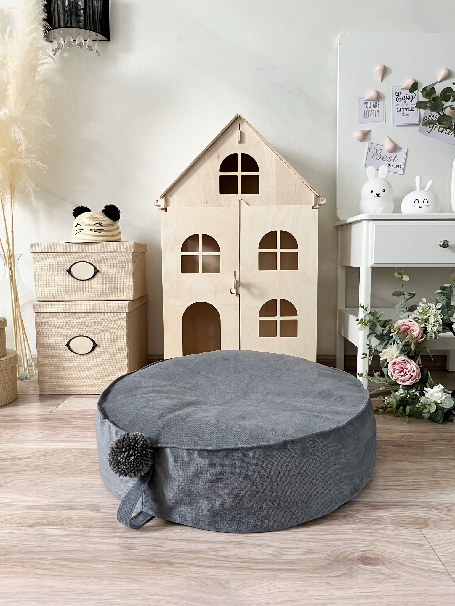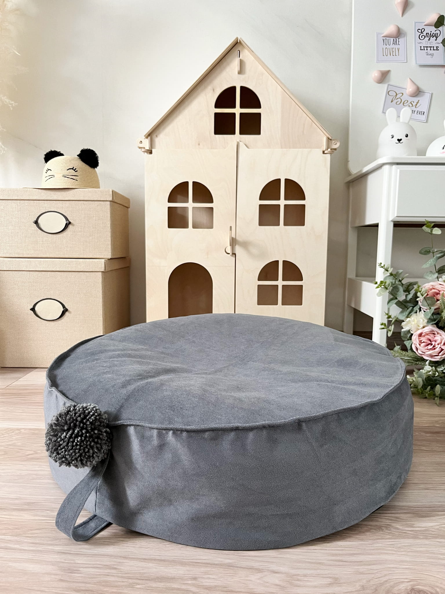 Der Pouf hat einen angenähten Griff, so dass Kinder ihn problemlos an jeden beliebigen Ort tragen können.