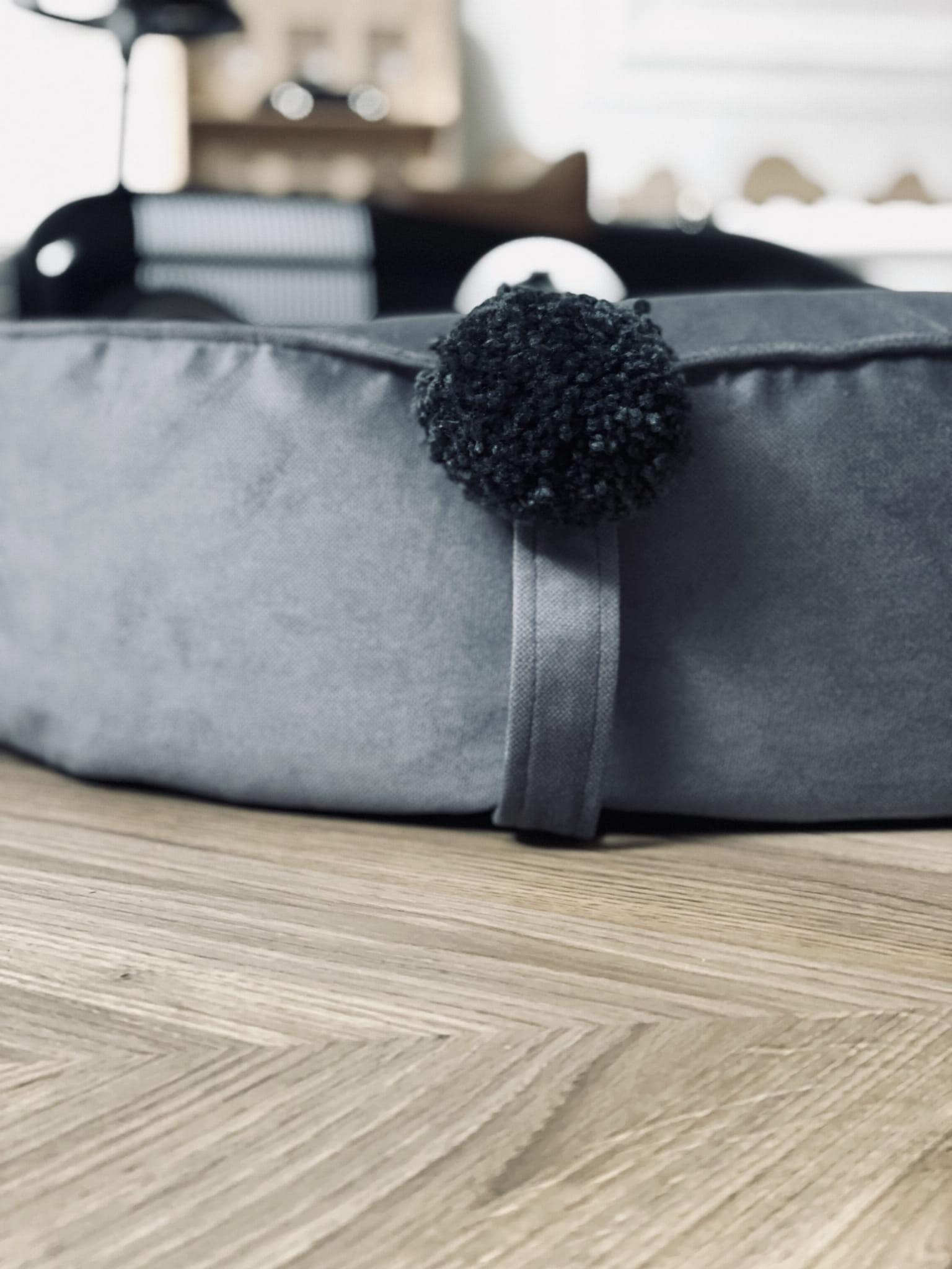 Für einen noch schöneren Effekt hat der Pouf eine entzückende Bommel.