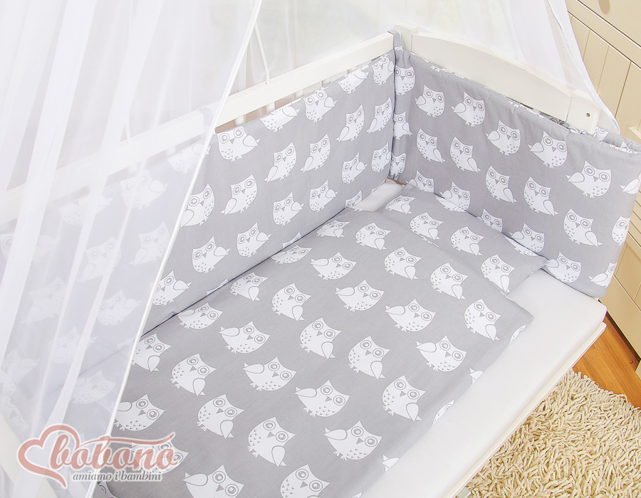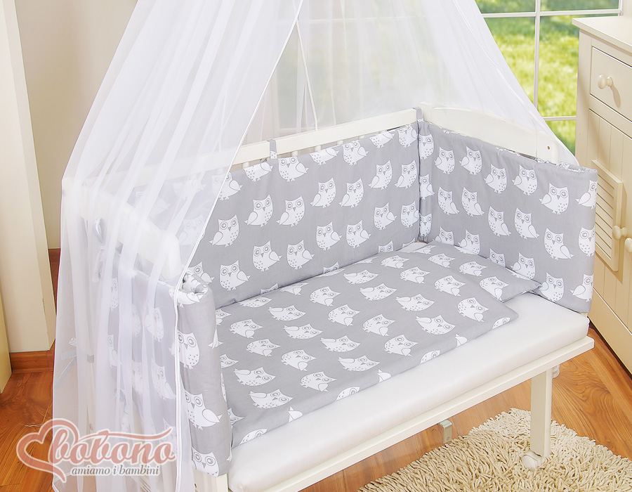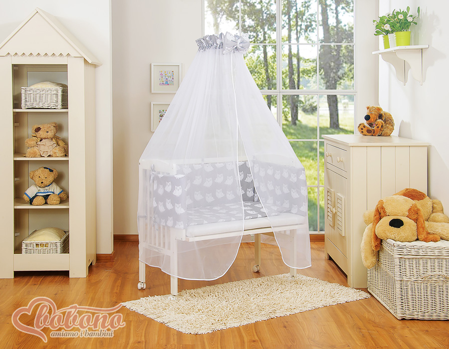 Komplett Beistellbett FABIO mit Matratze und Bettwäsche Set - Basic Eulen grau Wir präsentieren Ihnen wunderschönes Beistellbettchen welches aus schadstofffreien Materialien angefertigt wurde. Erfüllt die gültigen EU Normen.