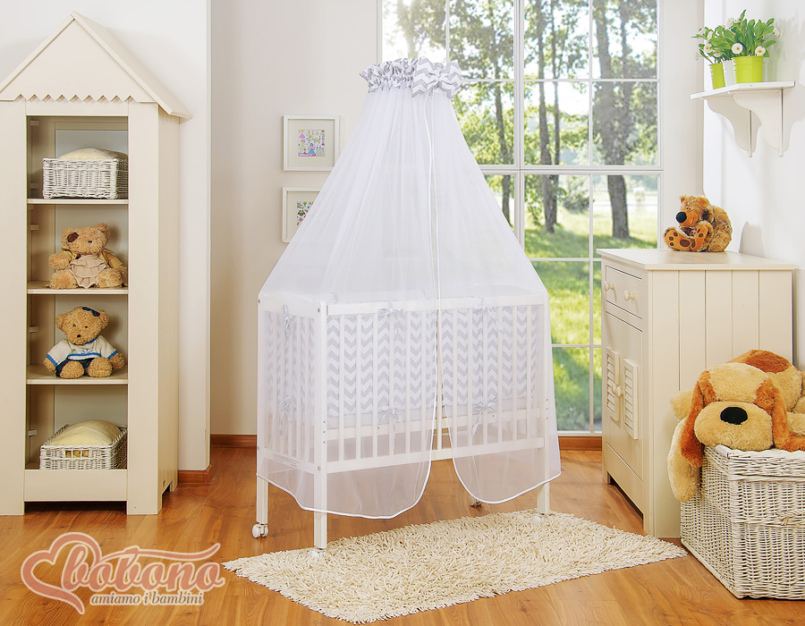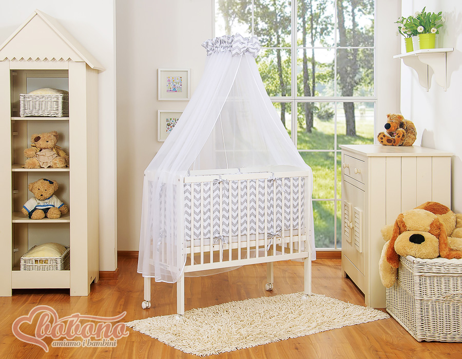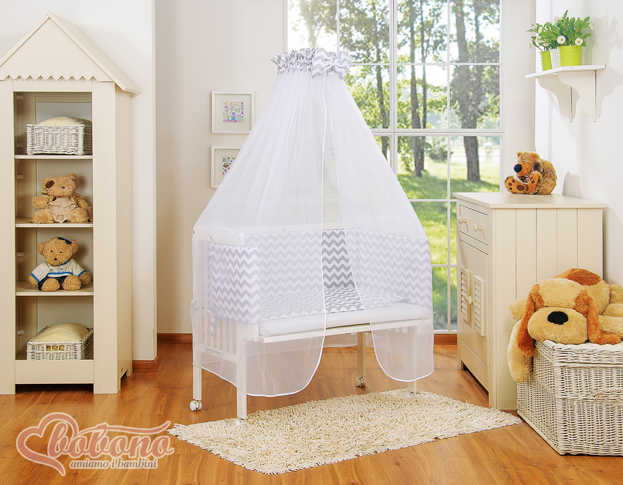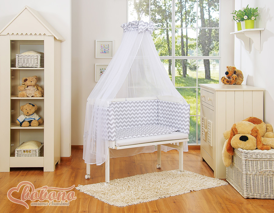 Komplett Beistellbett FABIO mit Matratze und Bettwäsche Set - Basic Zick-Zack - grau Wir präsentieren Ihnen wunderschönes Beistellbettchen welches aus schadstofffreien Materialien angefertigt wurde. Erfüllt die gültigen EU Normen.