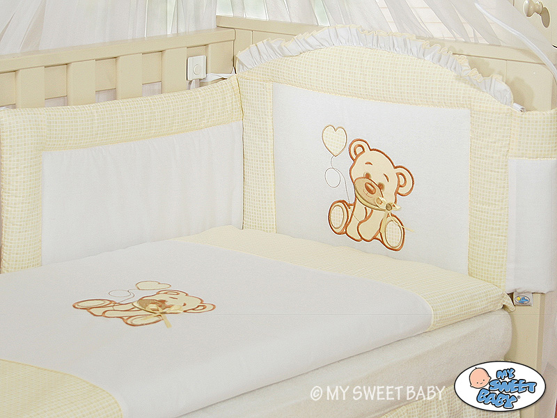 Stubenwagen » Bettwäsche für Babys » Bettwäsche für Babybett BÄR MIT SCHLEIFE » Bettwäsche Sets für Babybett 140cm » Kopfschutz für Kinderbett 140cm » Kopfschutz 140cm - Bär mit Schleife weiß