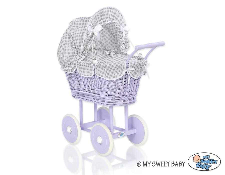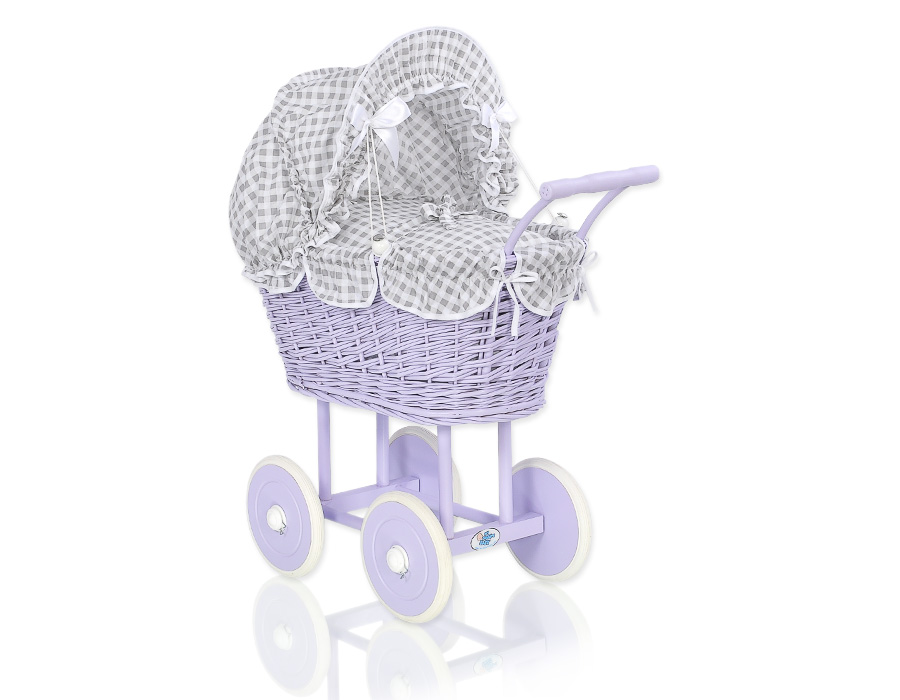 Stubenwagen » Spielzeug Kuscheltiere » Puppenwagen und Spielzeug » Puppenwagen aus Weide » Lila Weide Retro Puppenwagen Bettwäsche Grau Kariert nr 91699-619