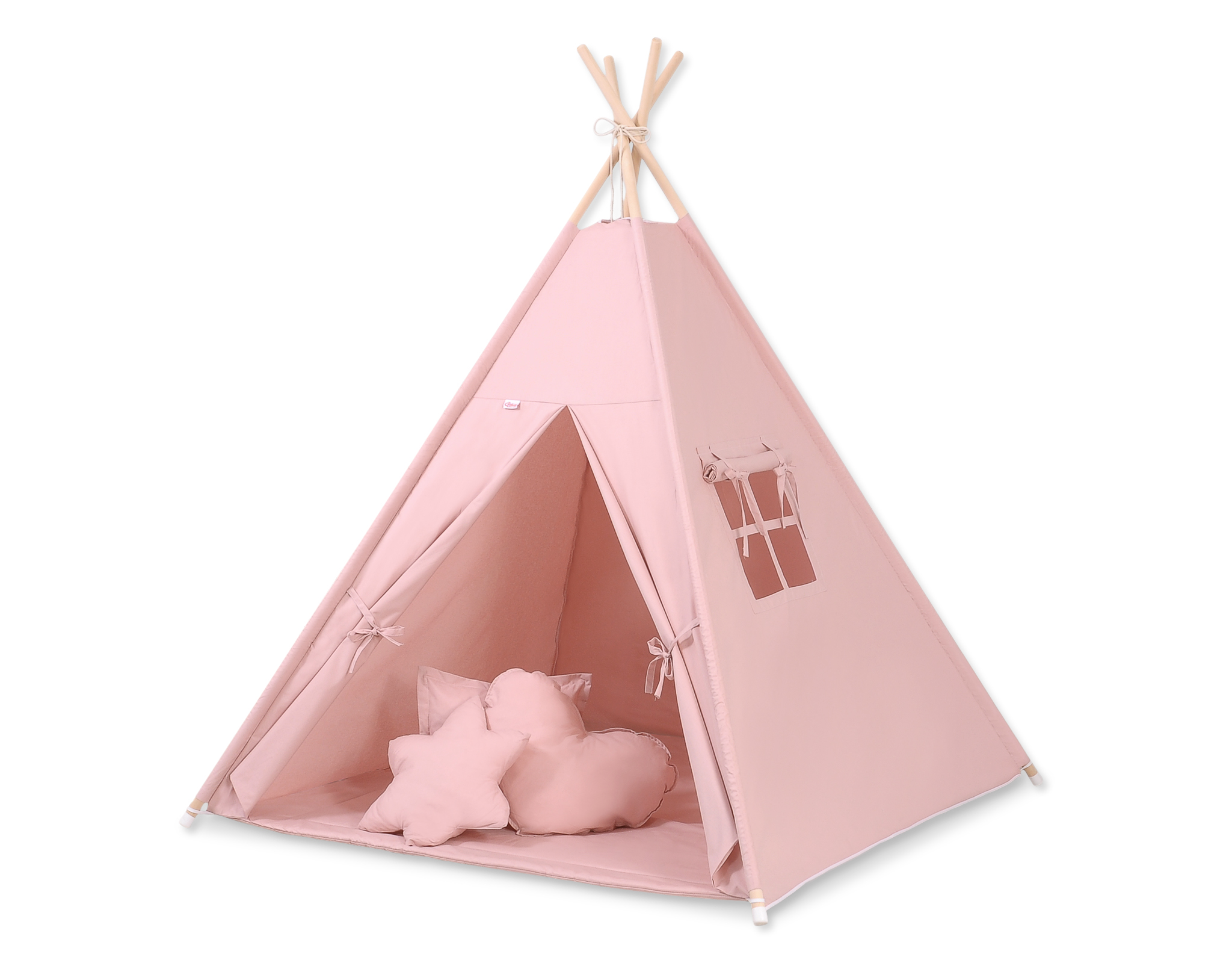 MEGA Set: Teepee Kinderspiel-Zelt+ Spielmatte+ Kissen + Schmuckfedern GRATIS! - altrosa