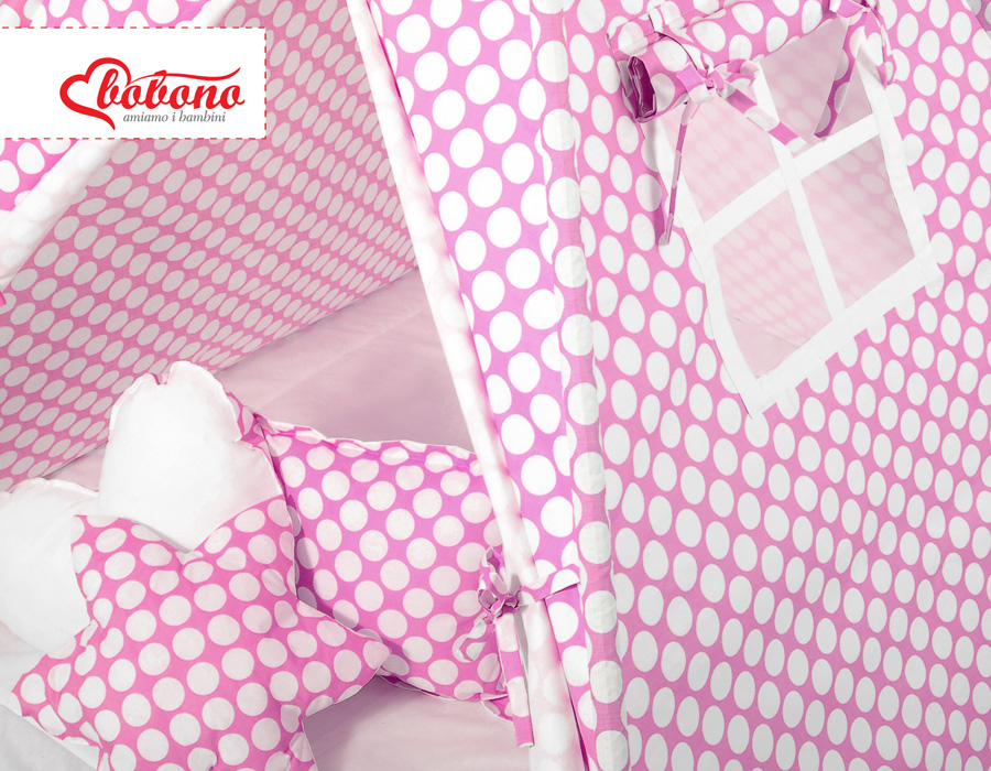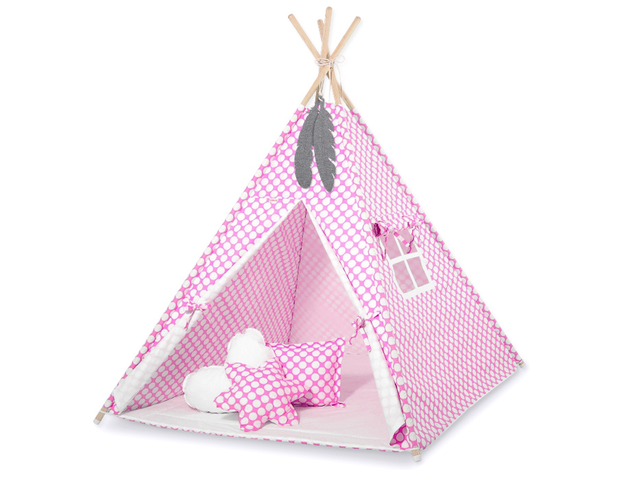 MEGA Set: Teepee Kinderspiel-Zelt+ Spielmatte+ Kissen + Schmuckfedern GRATIS! - rosa Punkt-Muster