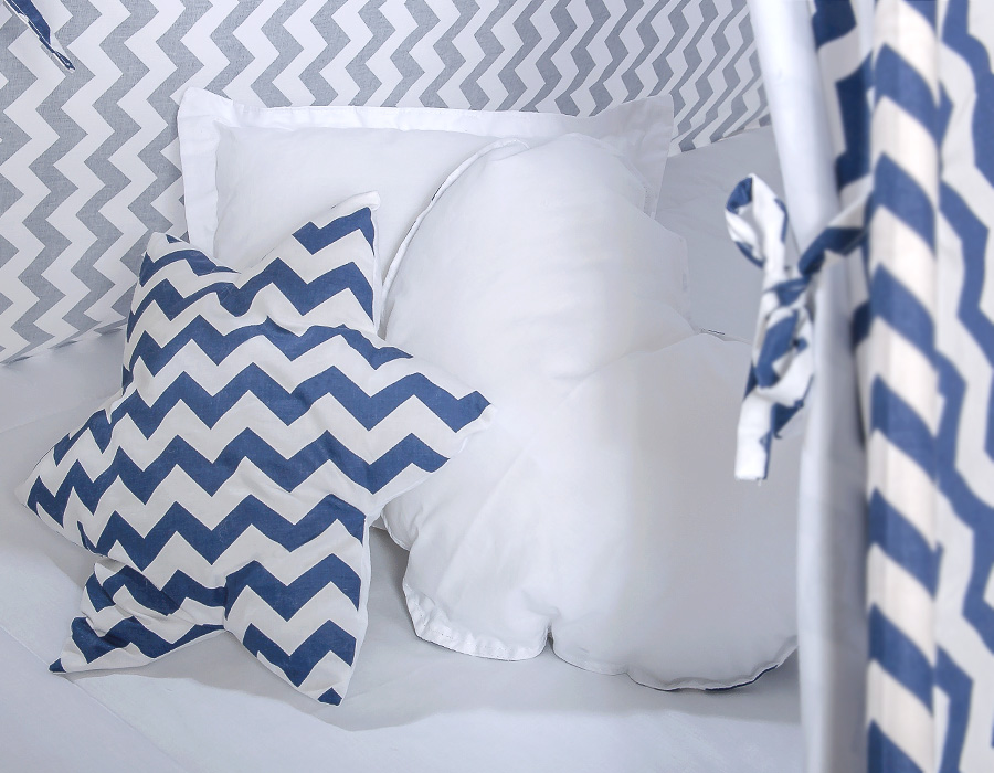 Stubenwagen » Spielzeug Kuscheltiere » Teepee Kinderspiel-Zelt » MEGA Set: Teepee Kinder Spielzelt+ Spielmatte+ Kissen » MEGA Set: Teepee Kinderspiel-Zelt+ Spielmatte+ Kissen + Schmuckfedern GRATIS! - Chevron dunkelblau