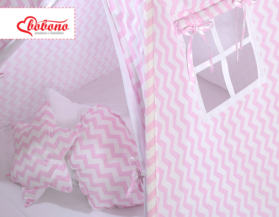 MEGA Set: Teepee Kinderspiel-Zelt+ Spielmatte+ Kissen + Schmuckfedern GRATIS! - Chevron rosa
