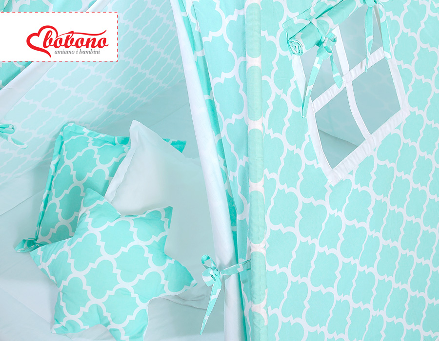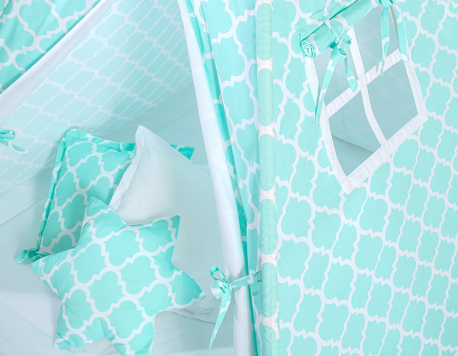 MEGA Set: Teepee Kinderspiel-Zelt+ Spielmatte+ Kissen + Schmuckfedern GRATIS! - Marokko minze