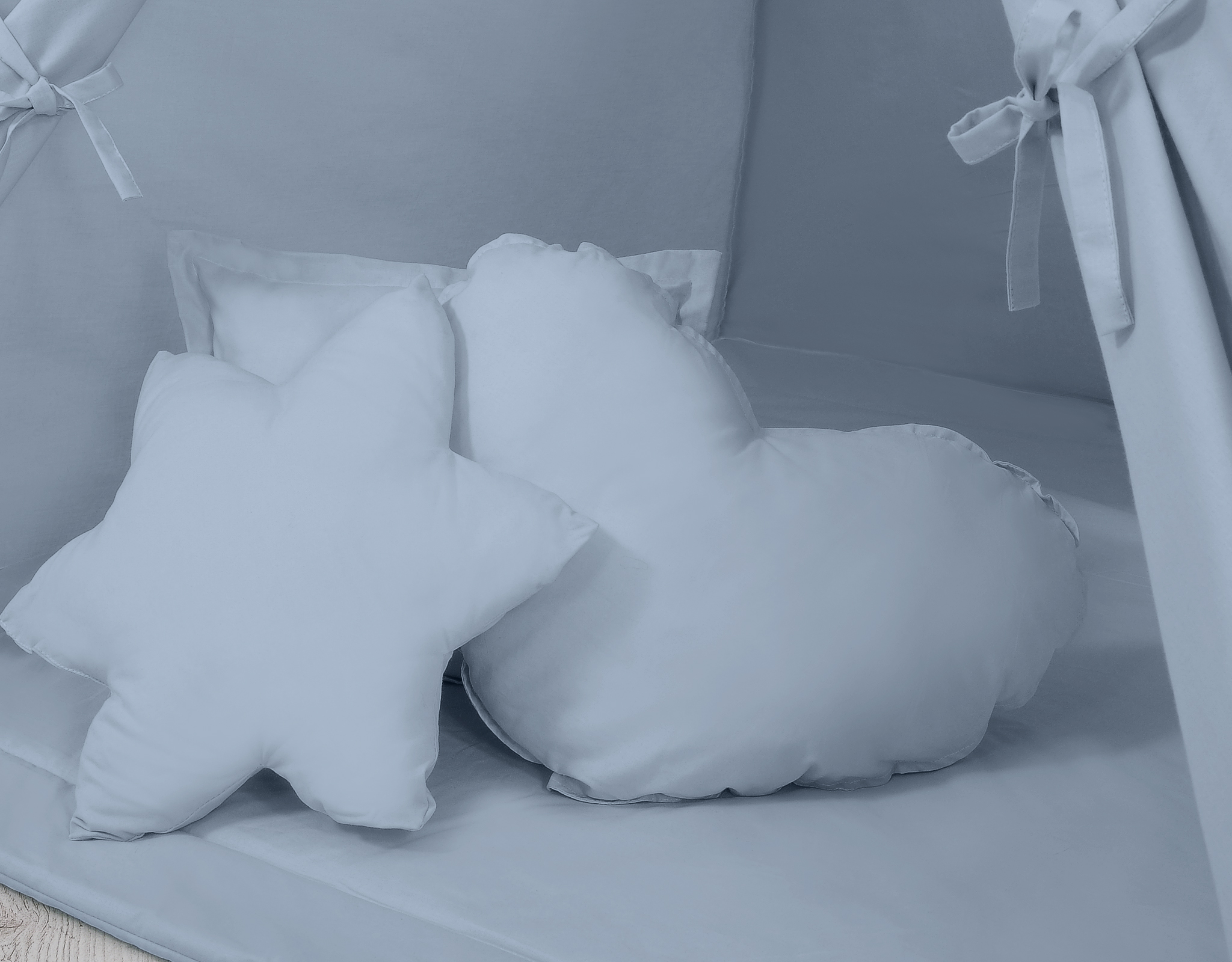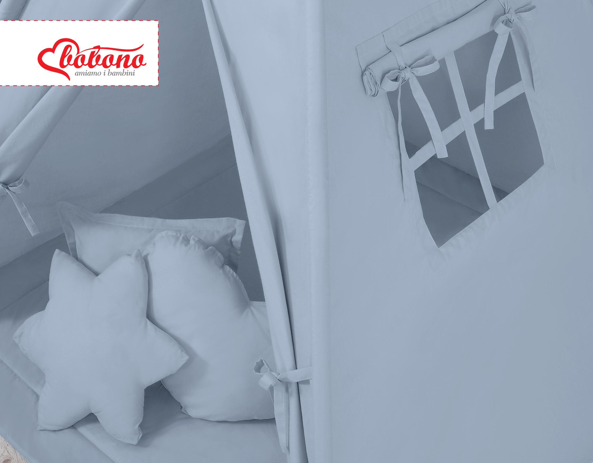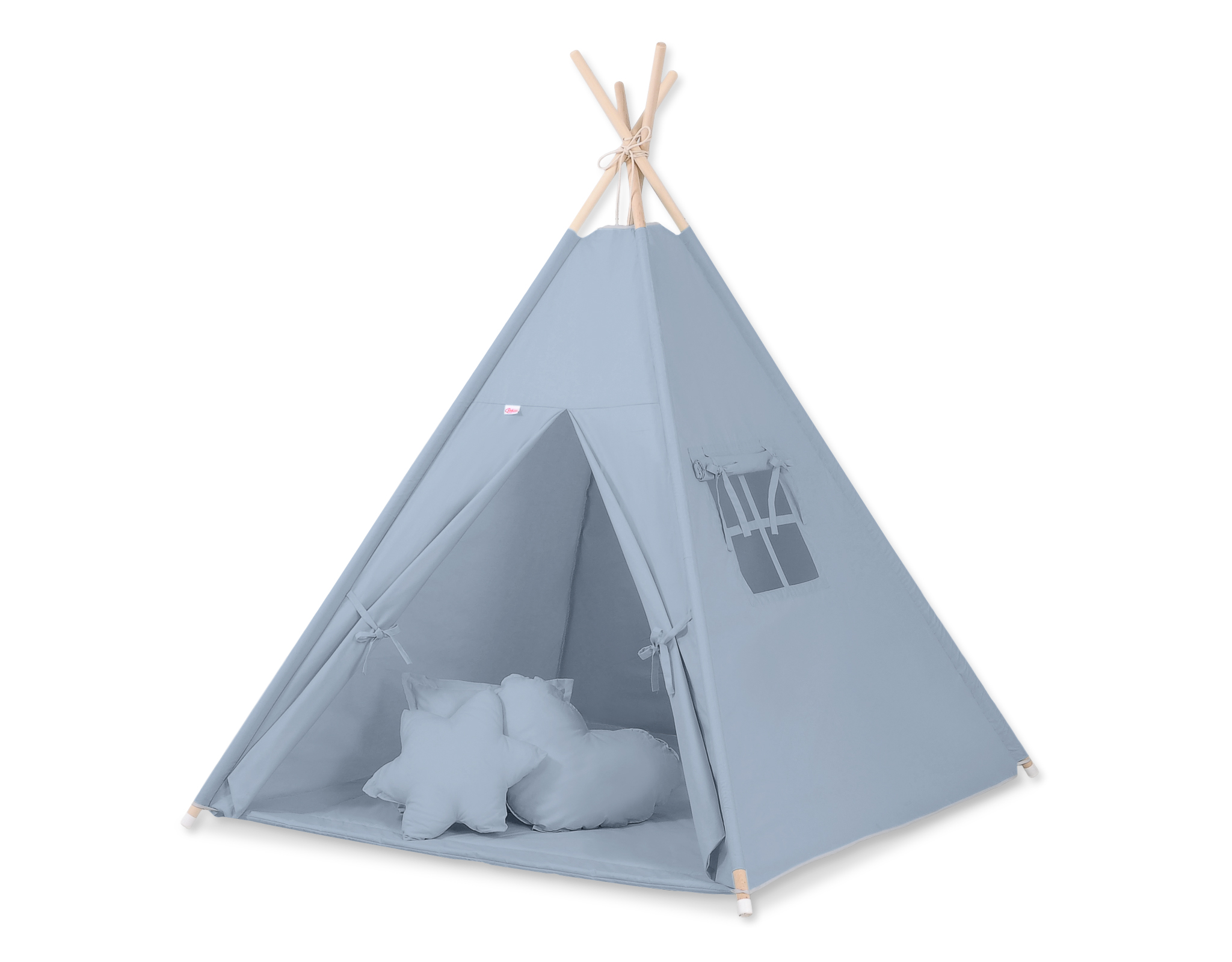 - Komplettes Zelt mit Stangen, Befestigungsschnur, Spielmatte und Kissen, zwei große Schmuckfedern aus Filz.