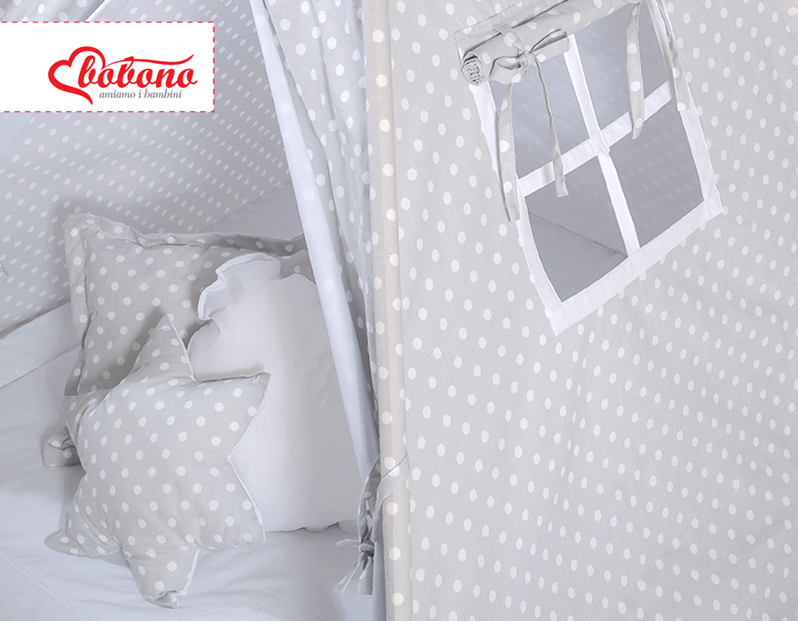 - Komplettes Zelt mit Stangen, Befestigungsschnur, Spielmatte und Kissen, zwei große Schmuckfedern aus Filz.