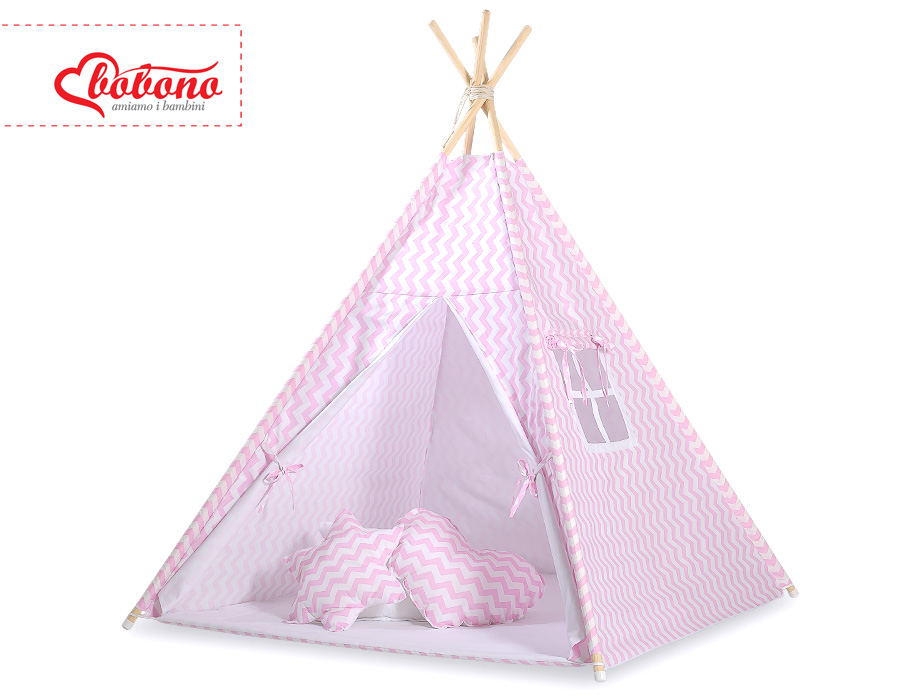 Stubenwagen » Spielzeug Kuscheltiere » Teepee Kinderspiel-Zelt » MINI Set: Tipi Zelt + Spielmatte » MINI Set: Teepee Kinderspiel-Zelt mit Spielmatte und Schmuckfedern GRATIS! - Chevron rosa