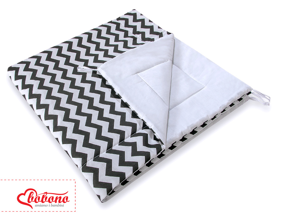 Stubenwagen » Spielzeug Kuscheltiere » Teepee Kinderspiel-Zelt » MINI Set: Tipi Zelt + Spielmatte » MINI Set: Teepee Kinderspiel-Zelt mit Spielmatte und Schmuckfedern GRATIS! - Chevron schwarz