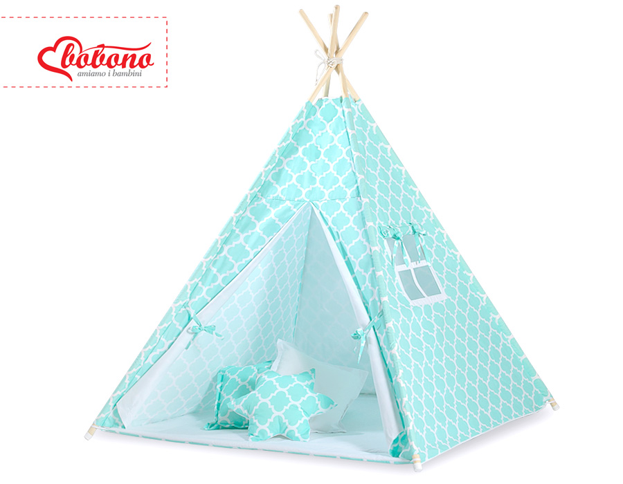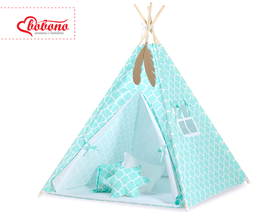 MINI Set: Teepee Kinderspiel-Zelt mit Spielmatte und Schmuckfedern GRATIS! -  Marokko minze