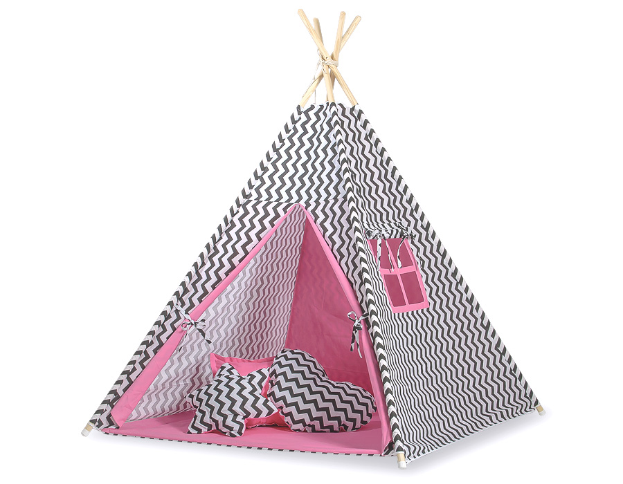 Rosa Dunkel Schwarz Chevron Spielmatte Zelt Tipi Set: MINI