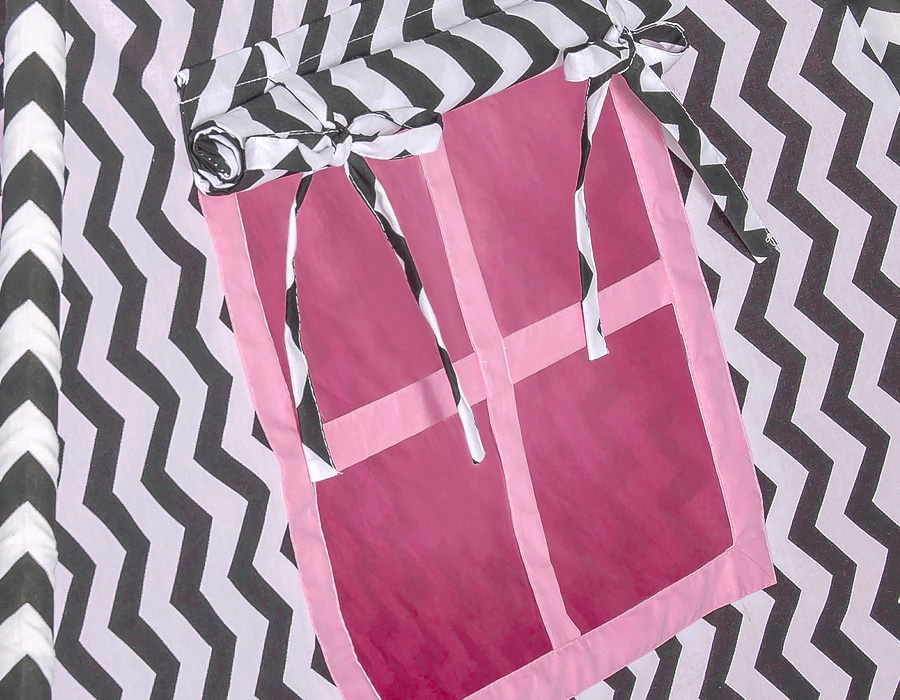 Stubenwagen » Spielzeug Kuscheltiere » Teepee Kinderspiel-Zelt » MINI Set: Tipi Zelt + Spielmatte » MINI Set: Tipi Zelt + Spielmatte - Chevron schwarz/ dunkel rosa