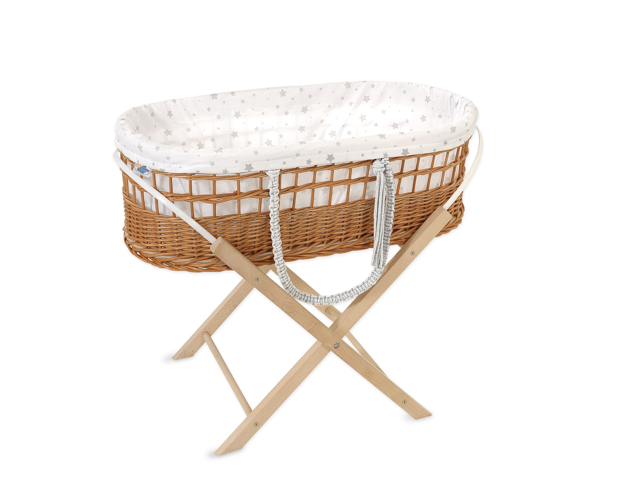 Eine zusätzliche Verzierung des Moseskorbs sind die handgeflochtenen Makramee-Kordelgriffe. Die langen, bequemen Griffe mit zusätzlichem Zierbügel. Die Griffe sind farblich auf das Innenfutter des Moseskorbs abgestimmt. Dank der Griffe lässt sich das Bettchen leicht tragen, so dass Sie Ihr Kind immer in Ihrer Nähe haben.