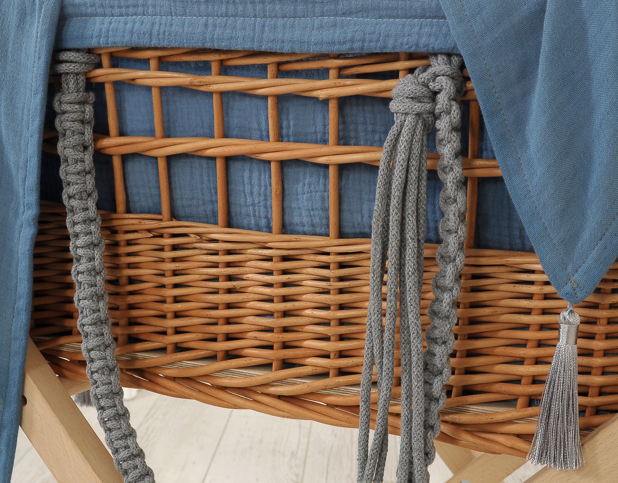 Stubenwagen » Stubenwagen » Moseskorb Boho » Moses Weidenkorb Boho mit Ständer mit Polsterung - pastellblau