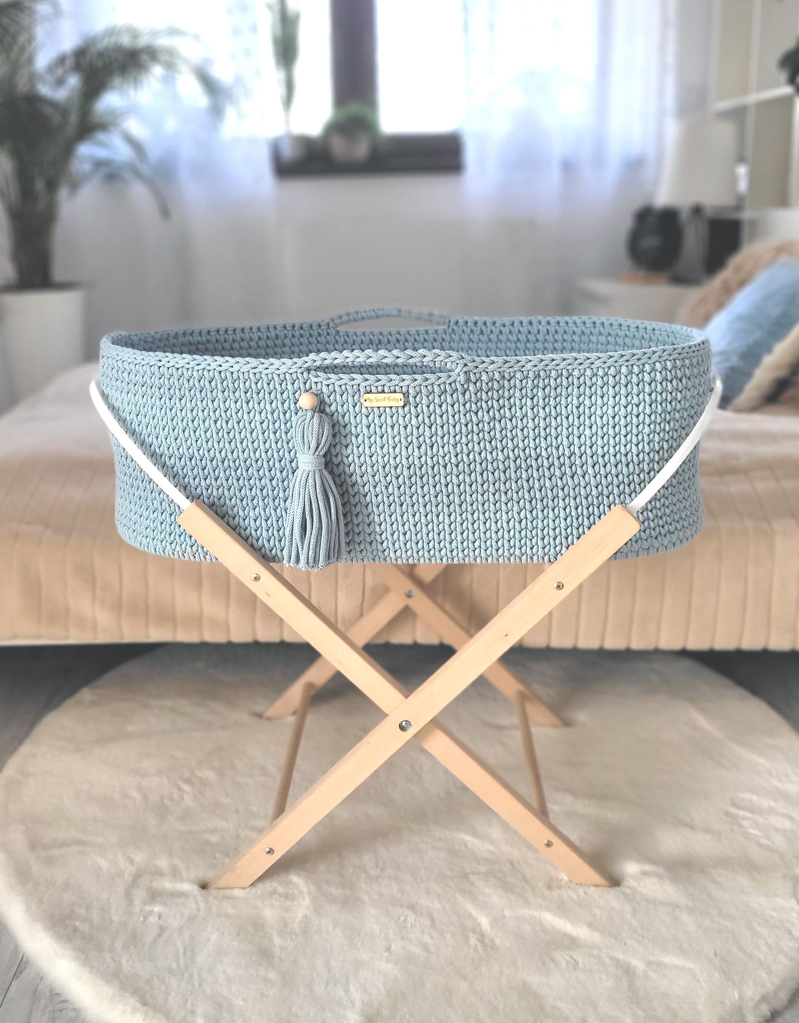 Ein von Hand gefertigter Korb aus Baumwollschnur im Boho-Stil. Perfekt für jedes Kleinkind – es sorgt für sicheren und friedlichen Schlaf. Die Baumwollwände ermöglichen eine ausreichende Luftzirkulation. Die Matratze besteht aus dickem, gepresstem, zertifiziertem Vlies mit entsprechender Weichheit und abnehmbarem Bezug. Dank der Griffe lässt sich das Bettchen leicht tragen und das Kleinkind kann immer in Ihrer Nähe sein. Am Griff befindet sich ein handgefertigter Kordel in der Farbe des Korbes mit einer Holzperle.