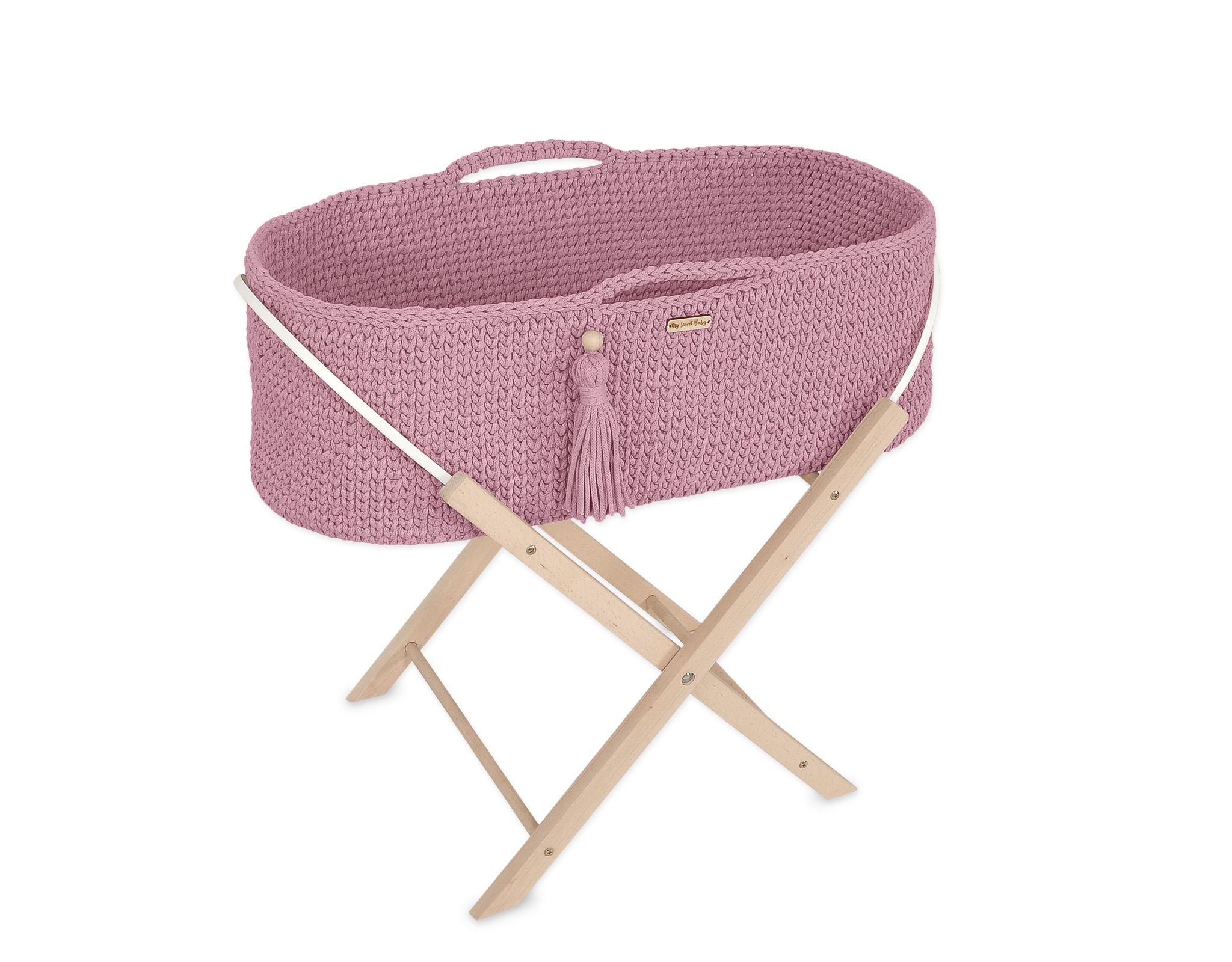 Moseskorb mit Ständer Boho Handmade Lavendel Ein von Hand gefertigter Korb aus Baumwollschnur im Boho-Stil. Perfekt für jedes Kleinkind – es sorgt für sicheren und friedlichen Schlaf. Die Baumwollwände ermöglichen eine ausreichende Luftzirkulation. Die Matratze besteht aus dickem, gepresstem, zertifiziertem Vlies mit entsprechender Weichheit und abnehmbarem Bezug. Dank der Griffe lässt sich das Bettchen leicht tragen und das Kleinkind kann immer in Ihrer Nähe sein. Am Griff befindet sich ein handgefertigter Kordel in der Farbe des Korbes mit einer Holzperle. Wird mit einem stabilen Holzständer geliefert. Auf dem boho moses basket angebracht, erleichtert er den täglichen Gebrauch.