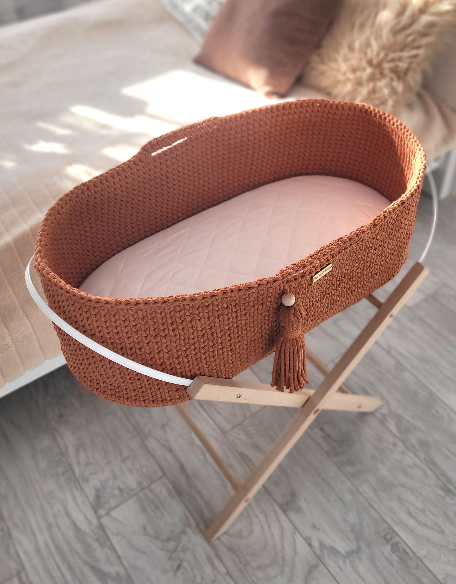 Ein von Hand gefertigter Korb aus Baumwolleschnur im Boho-Stil. Perfekt für jedes Kleinkind – es sorgt für sicheren und friedlichen Schlaf. Die Baumwollwände ermöglichen eine ausreichende Luftzirkulation. Die Matratze besteht aus dickem, gepresstem, zertifiziertem Vlies mit entsprechender Weichheit und abnehmbarem Bezug. Dank der Griffe lässt sich das Bettchen leicht tragen und das Kleinkind kann immer in Ihrer Nähe sein. Am Griff befindet sich ein handgefertigter Kordel in der Farbe des Korbes mit einer Holzperle.