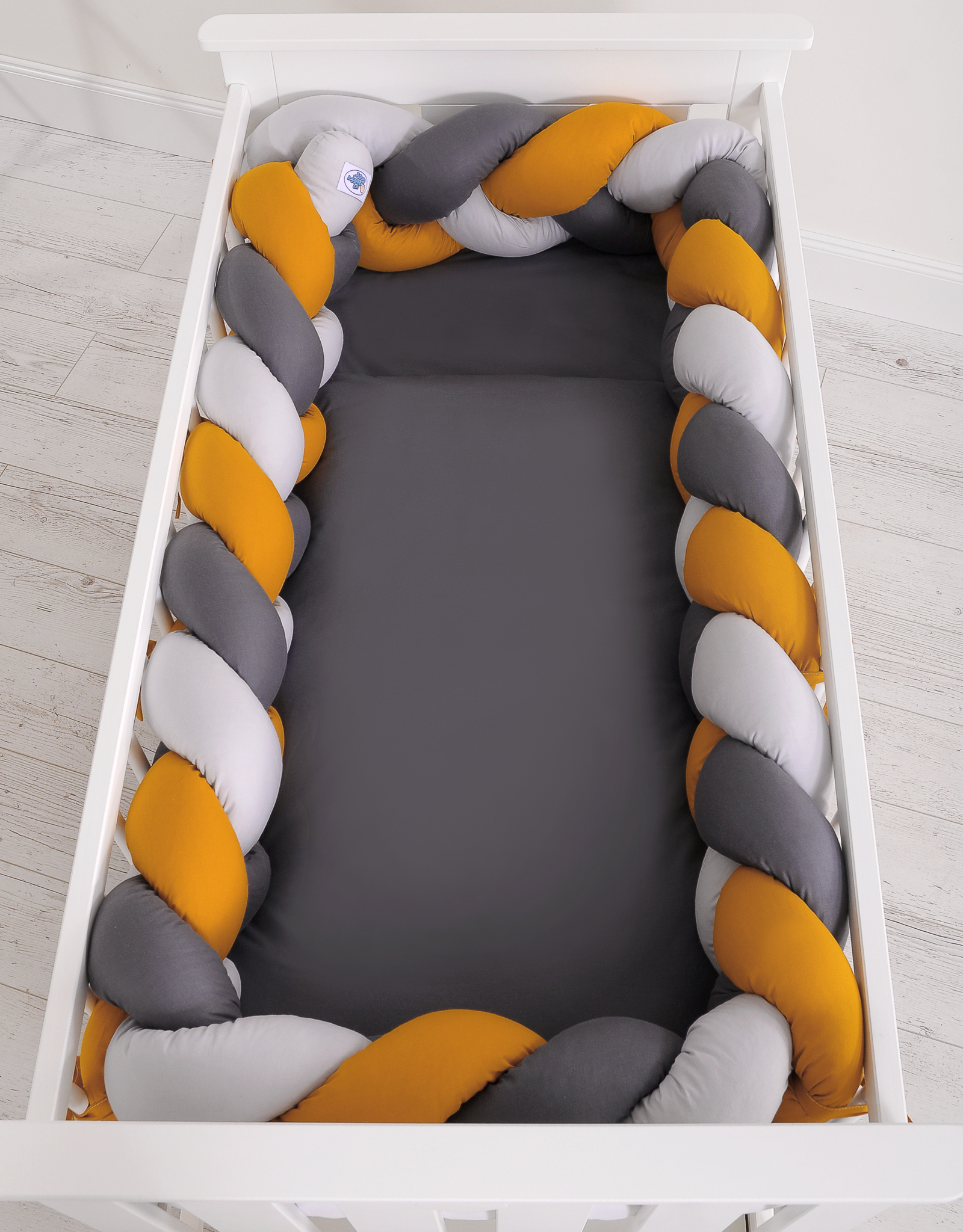 Das moderne Design sieht nicht nur schön aus, es schützt vor allen das Baby vor Zusammenstößen mit den Kinderbettstäbchen.