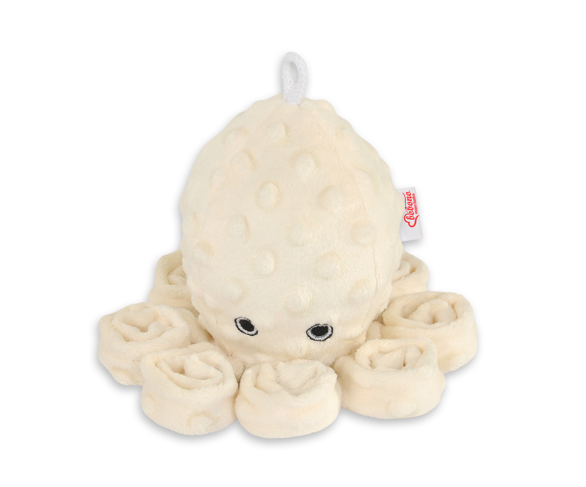 Minky Dot Polka Creme Rassel Plüschtier Oktopus