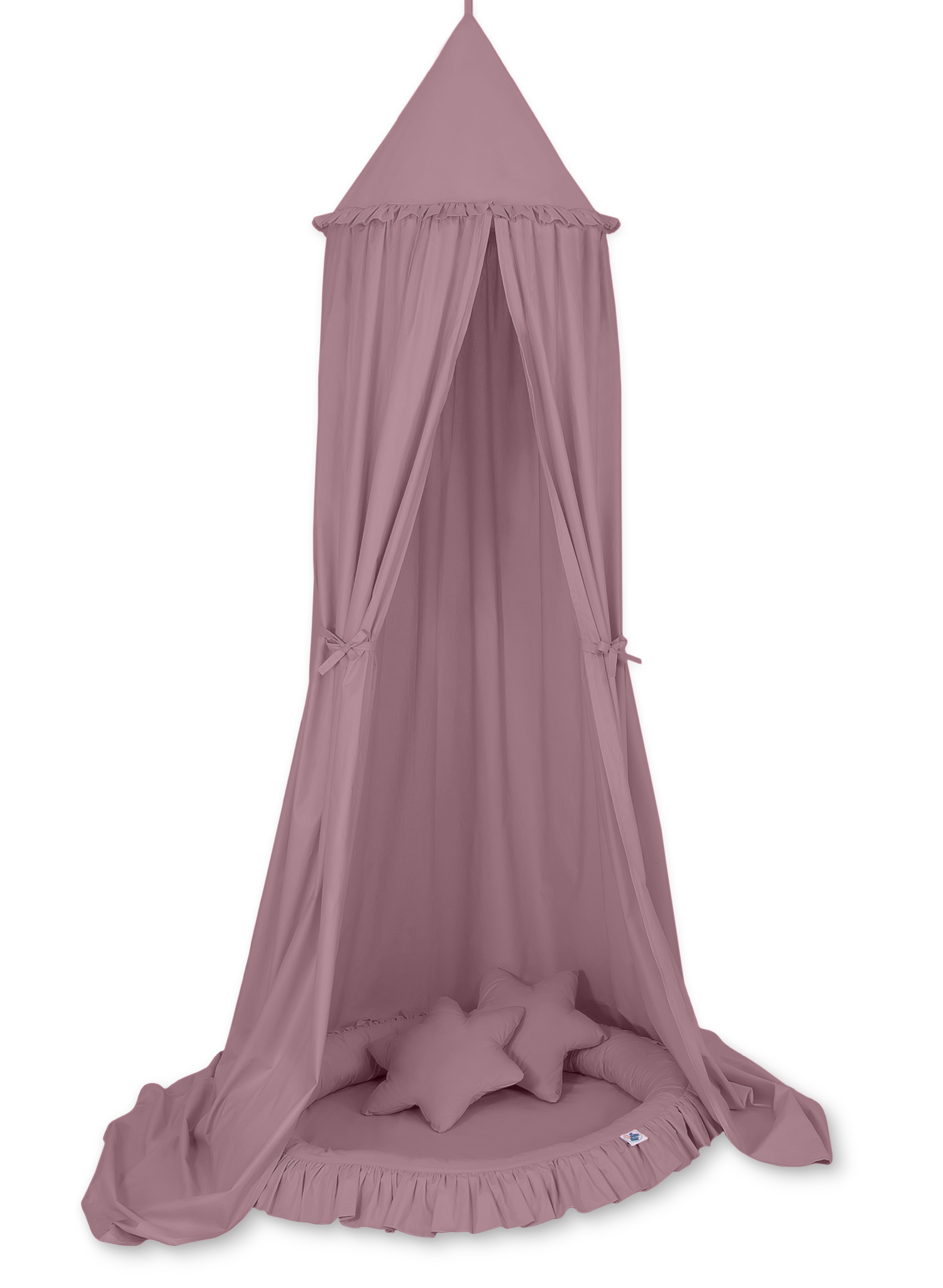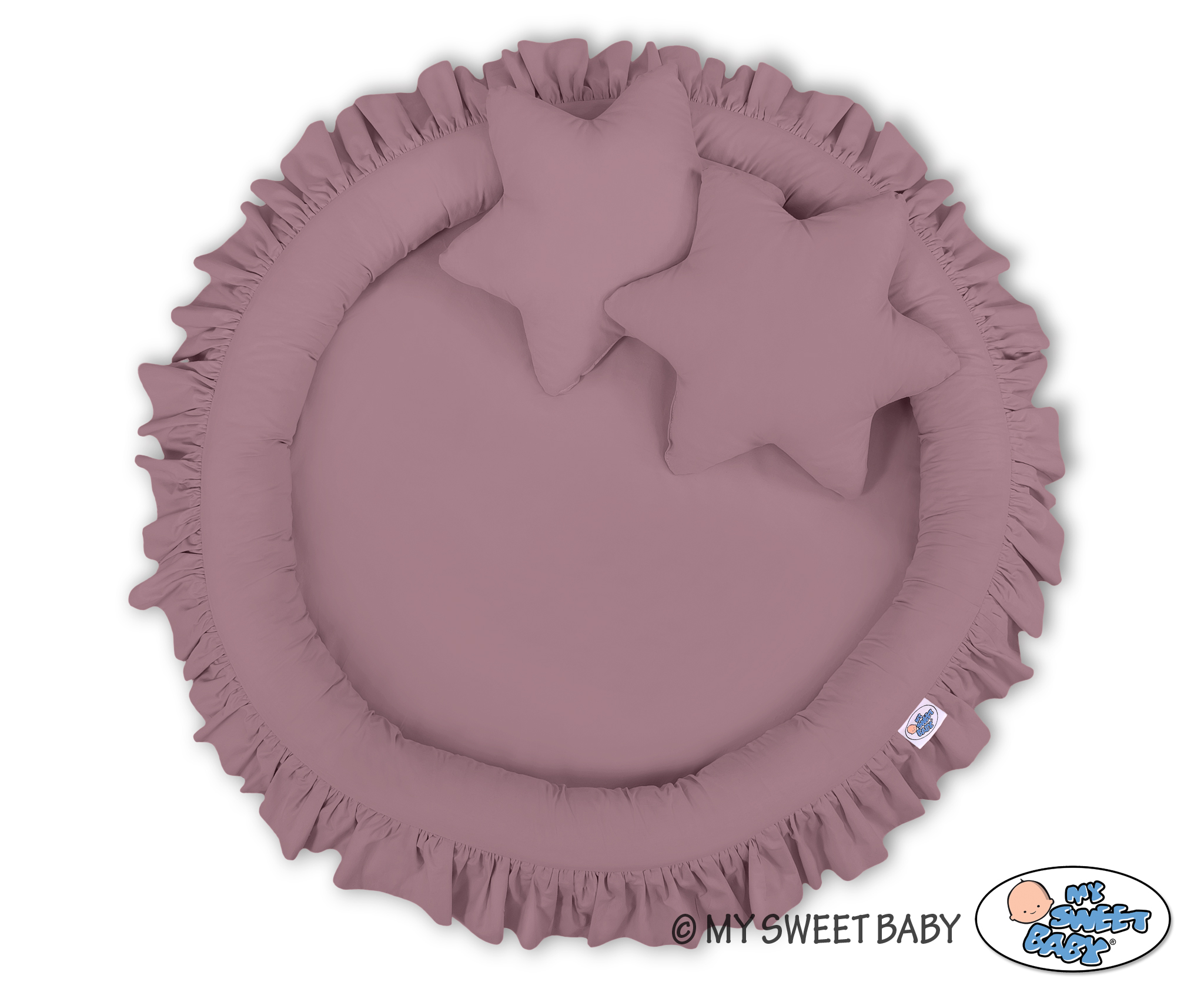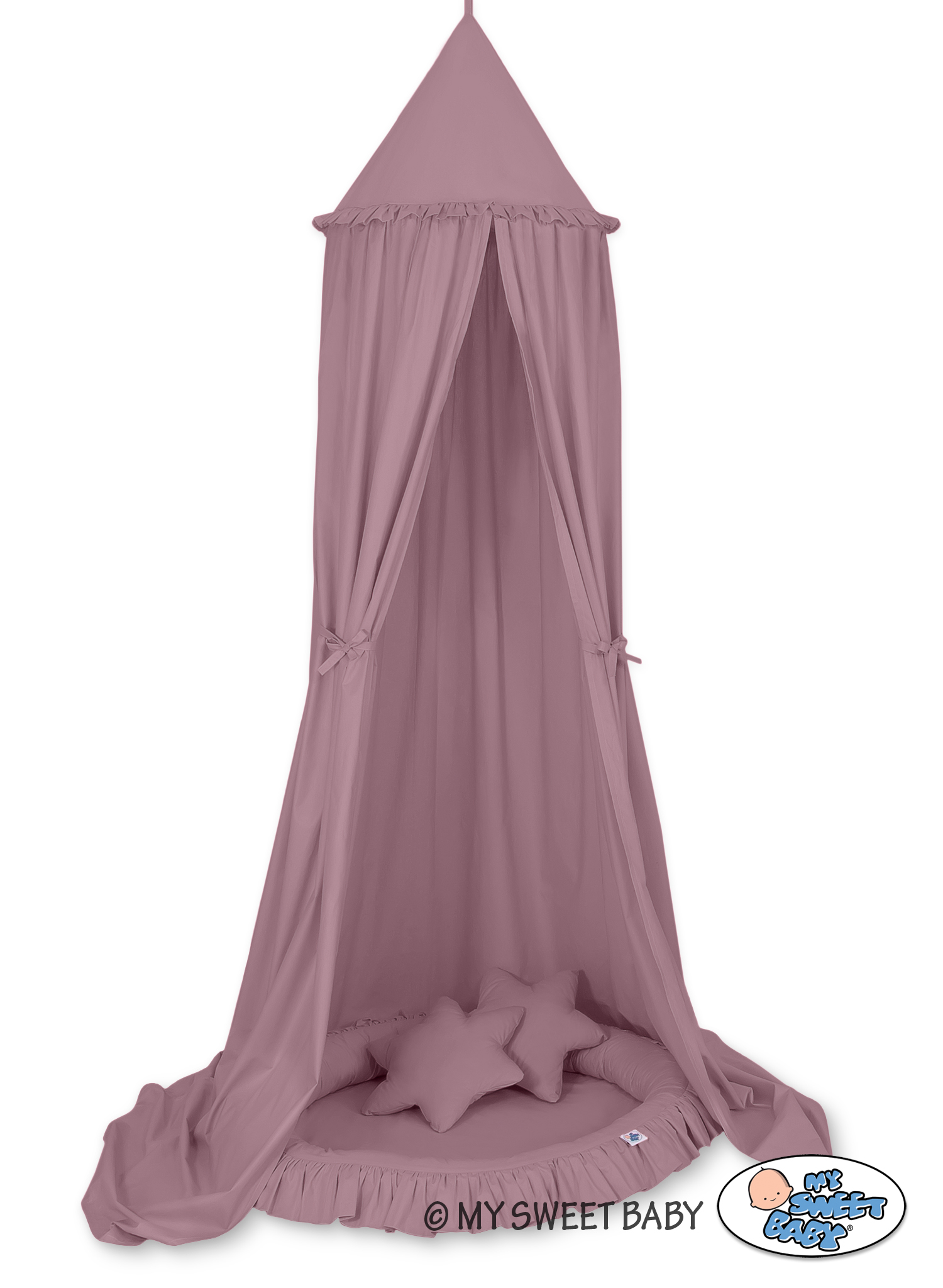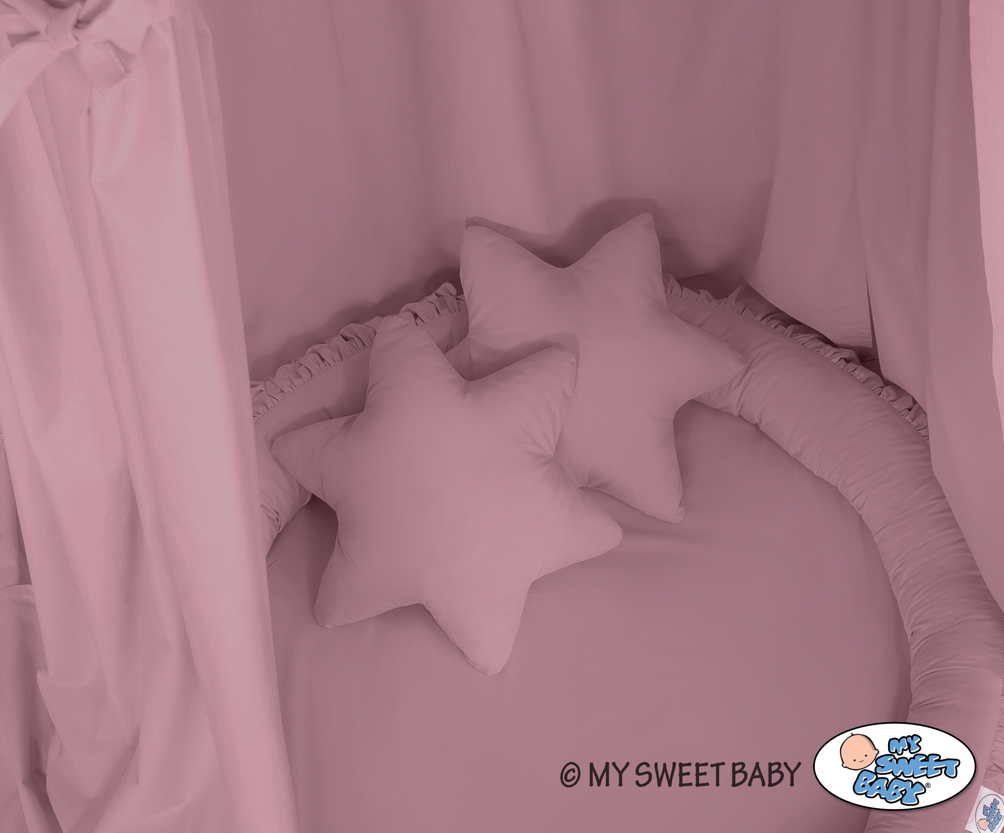Der Betthimmel in Kombination mit weichen, bequemen Nestchen mit Rüsche schafft einen perfekten Plaz zum spielen. Die weichen Nestchenränder bieten Sicherheit für Kleinkinder. Der Bezug ist aus reiner Baumwolle mit Ökotex Zertifikat. Der Rand ist mit Eco Fillbal Gewebe gefüllt. Das Gewebe ist weich, federnd, gleichzeitig voll luftdurchlässig. Der Boden des Rüschennestchens ist mit einem weichen Inlett aus antiallergischem Gewebe ausgestattet. Das Inlett ist rausnehmbar. Der Bezug kann bei 30 Grad gewaschen werden.
