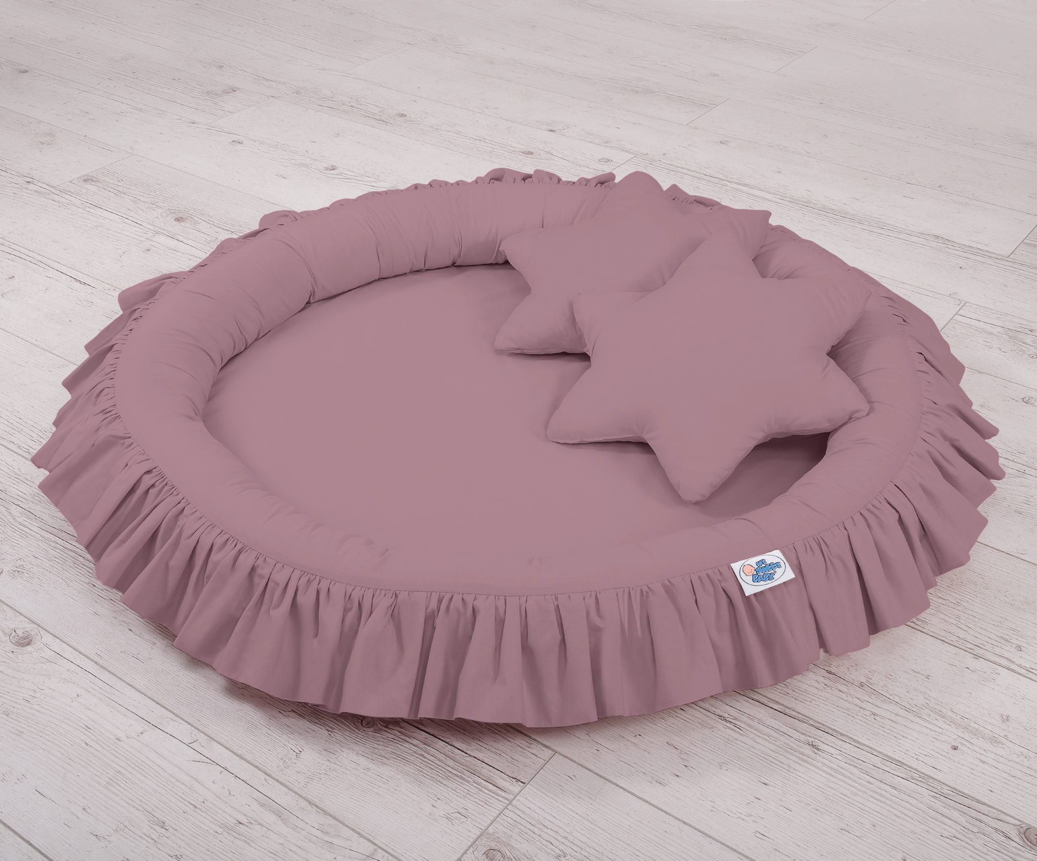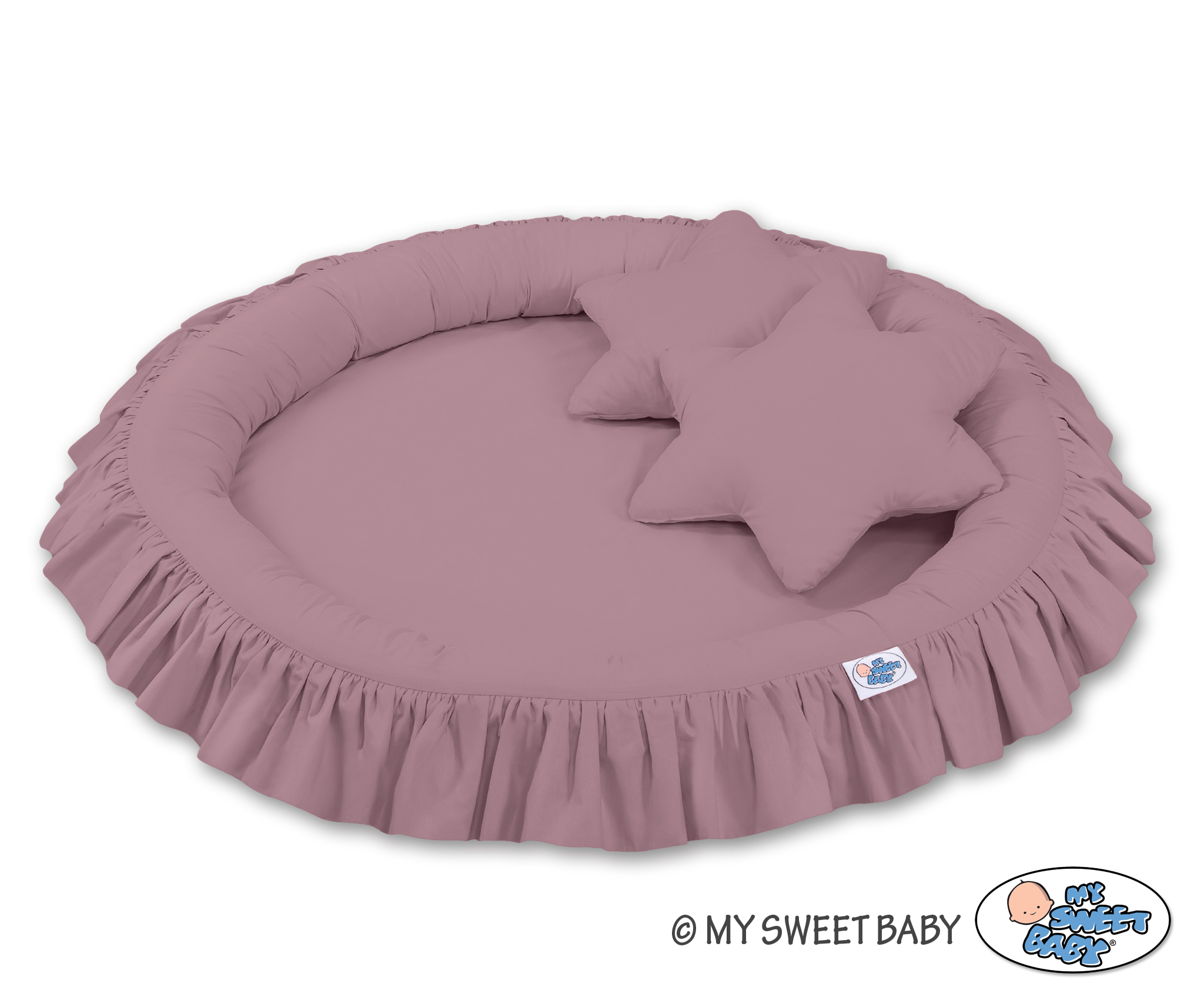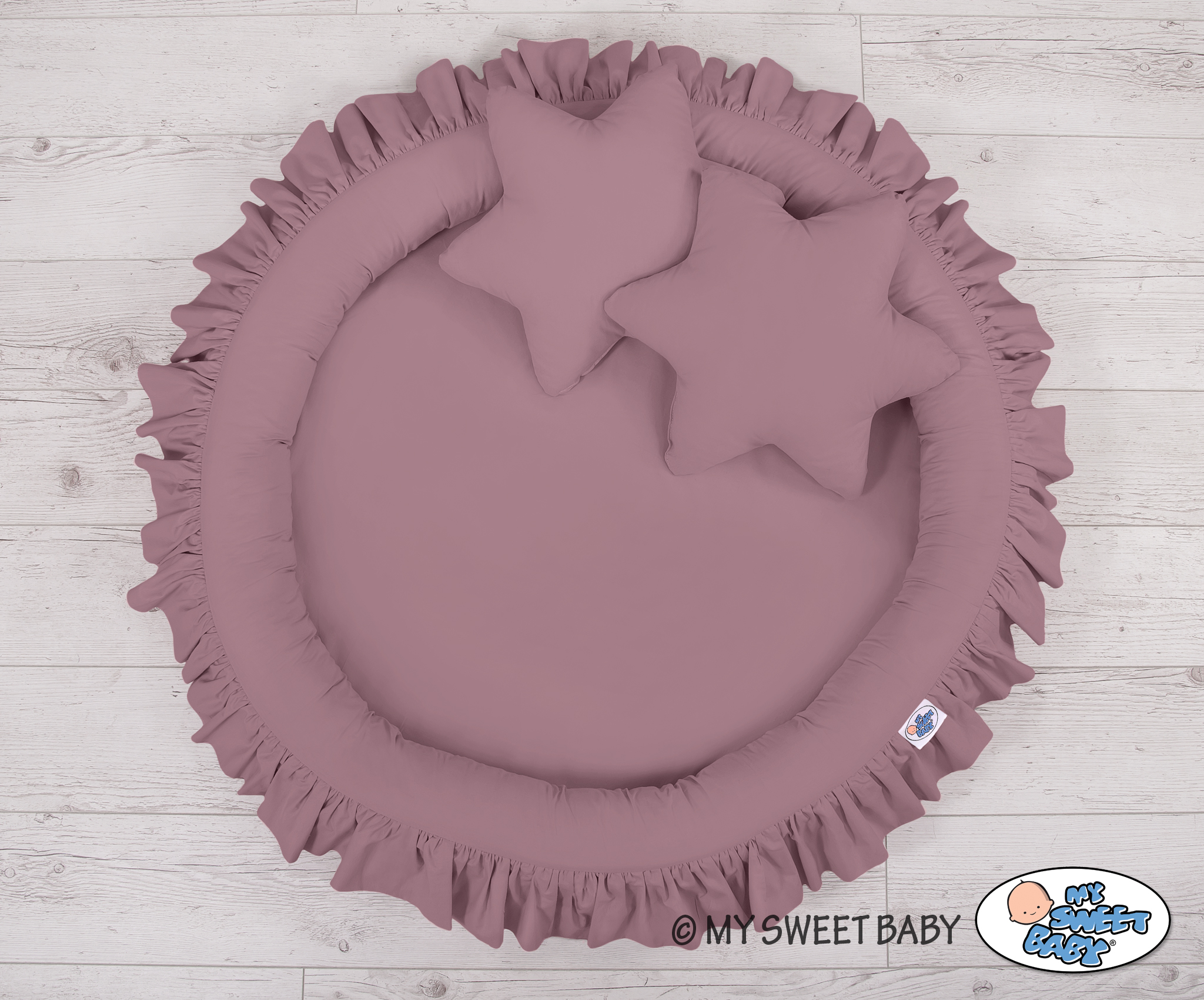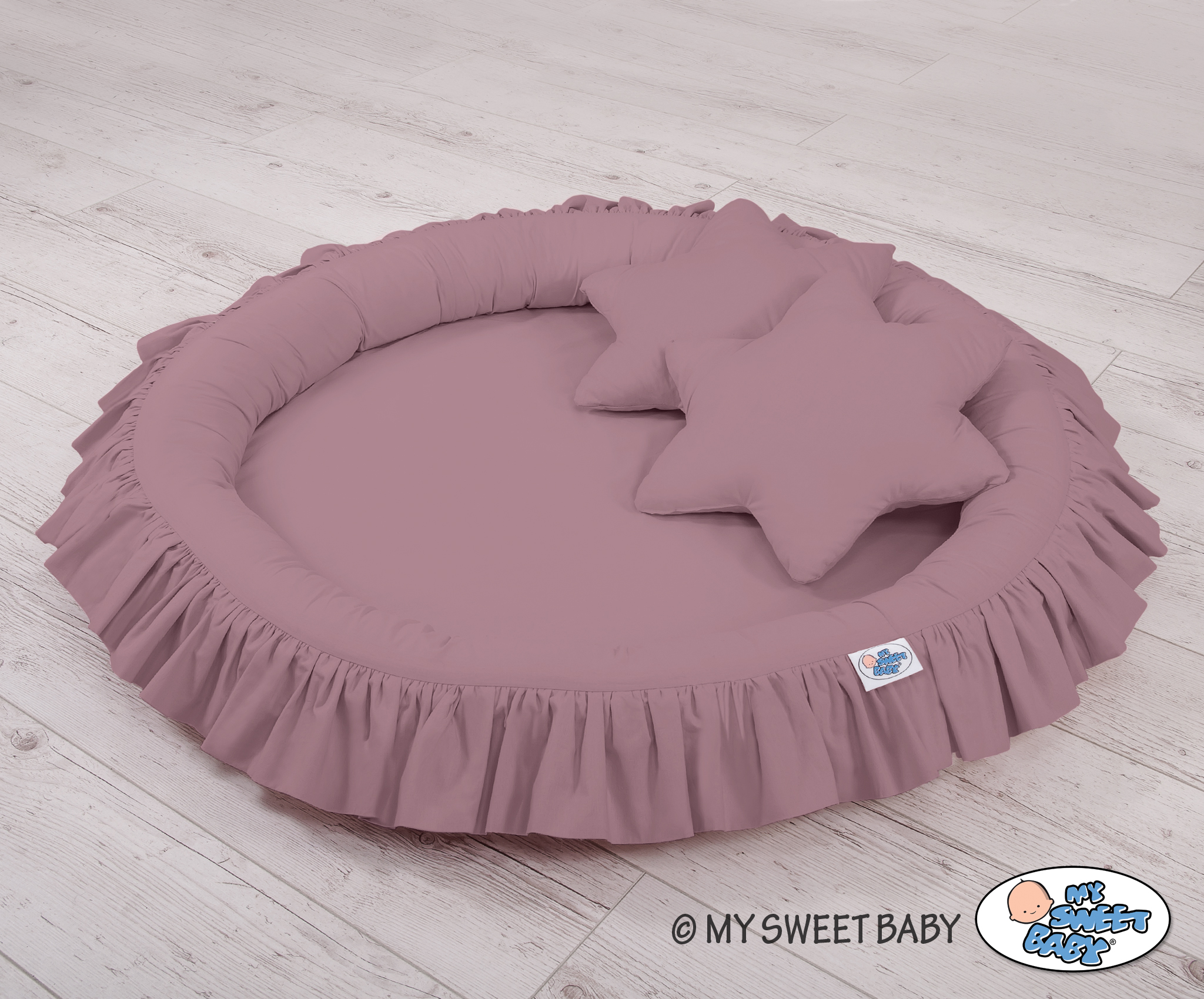 Der Betthimmel in Kombination mit weichen, bequemen Nestchen mit Rüsche schafft einen perfekten Plaz zum spielen. Die weichen Nestchenränder bieten Sicherheit für Kleinkinder. Der Bezug ist aus reiner Baumwolle mit Ökotex Zertifikat. Der Rand ist mit Eco Fillbal Gewebe gefüllt. Das Gewebe ist weich, federnd, gleichzeitig voll luftdurchlässig. Der Boden des Rüschennestchens ist mit einem weichen Inlett aus antiallergischem Gewebe ausgestattet. Das Inlett ist rausnehmbar. Der Bezug kann bei 30 Grad gewaschen werden.