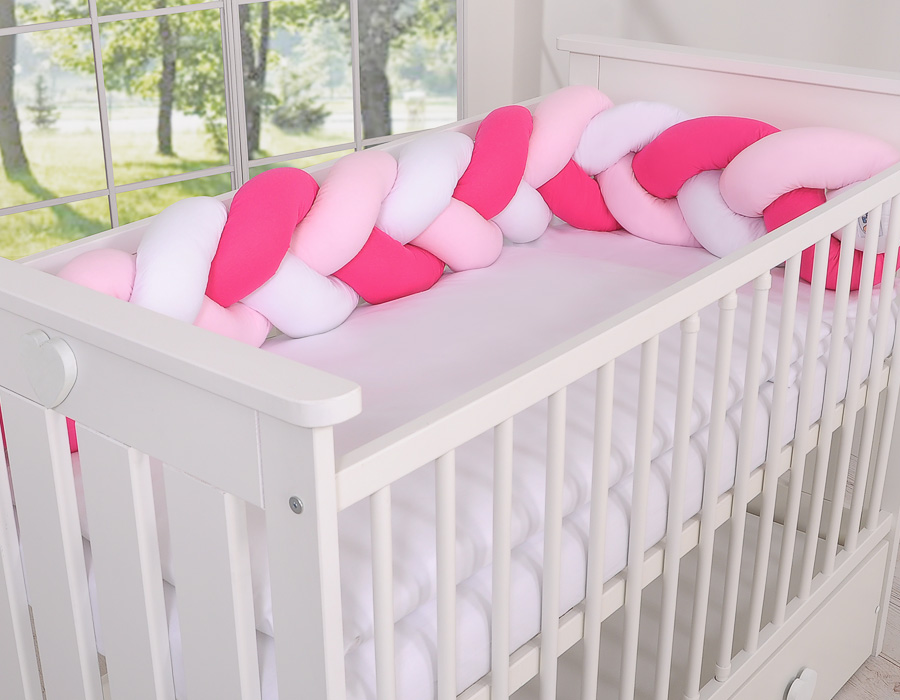 Rosa Weiß-dunkelrosa Babybett Bettschlange Geflochtene