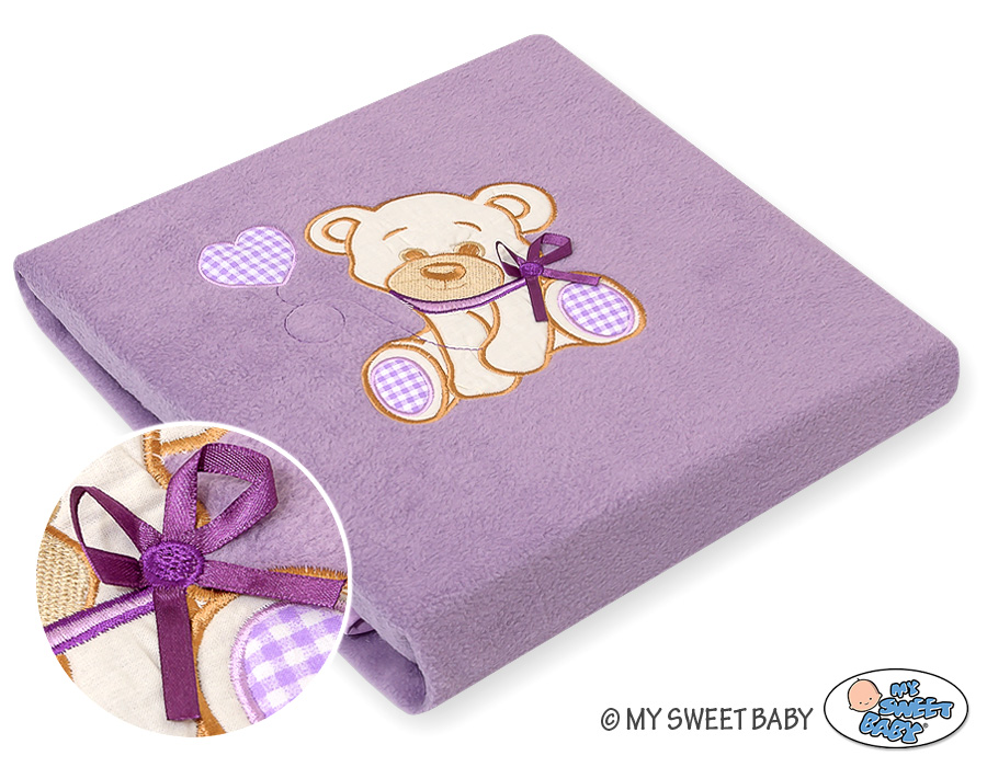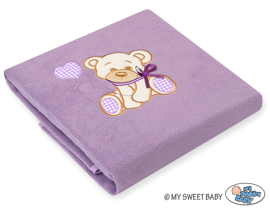 Stubenwagen » Bettwäsche für Babys » Bettwäsche für Babybett BÄR MIT SCHLEIFE » Polar - Fleece Decke » Polar Fleece Babydecke - Bär mit Schleife lila