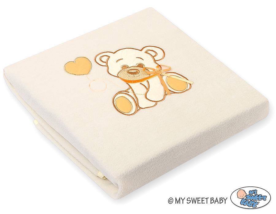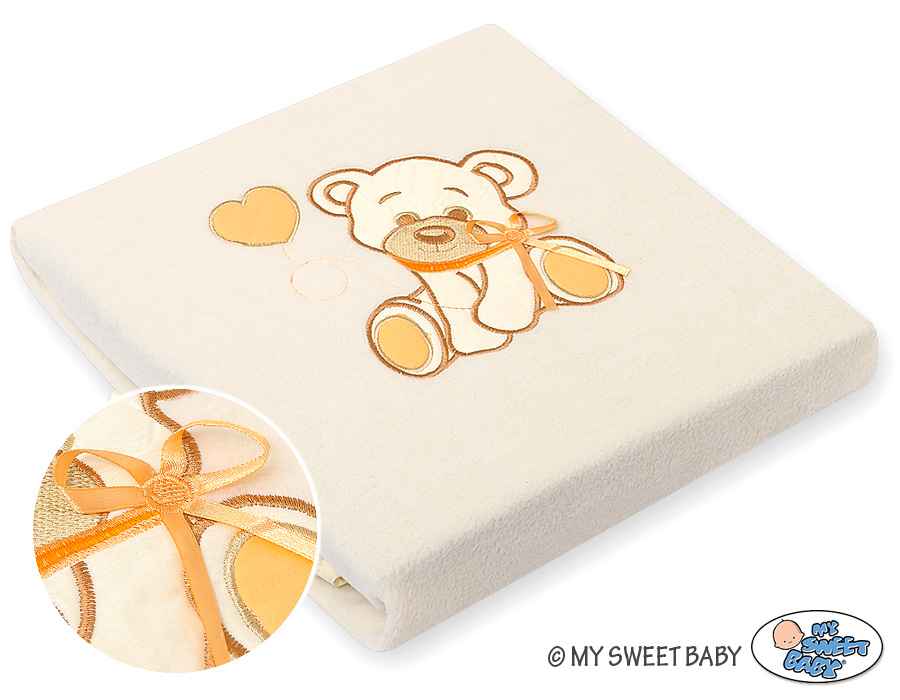 Stubenwagen » Bettwäsche für Babys » Bettwäsche für Babybett BÄR MIT SCHLEIFE » Polar - Fleece Decke » Polar Fleece Babydecke - Bär mit Schleife pfirsich