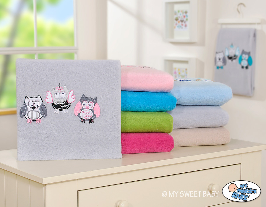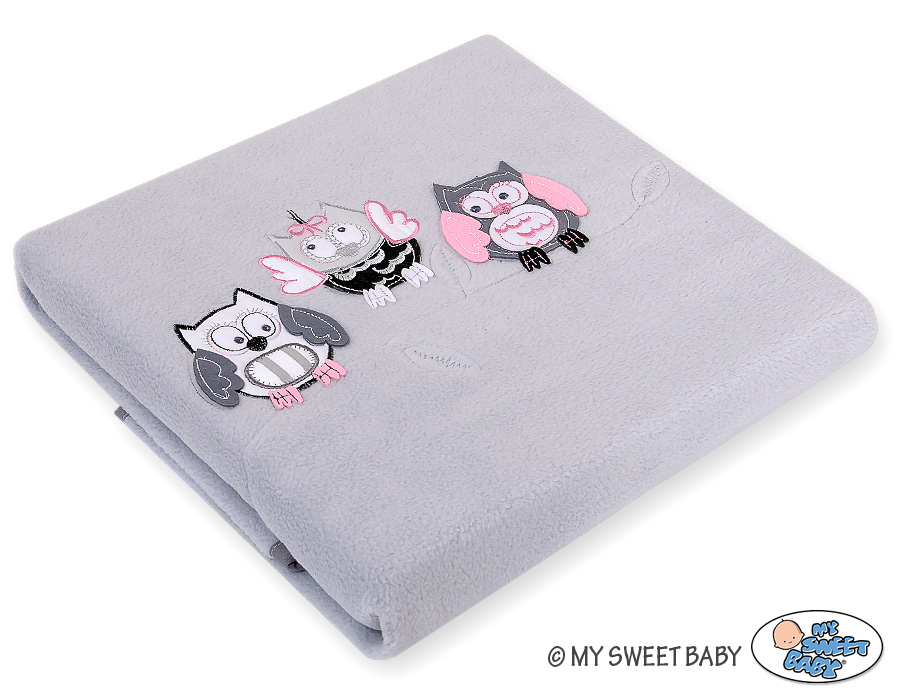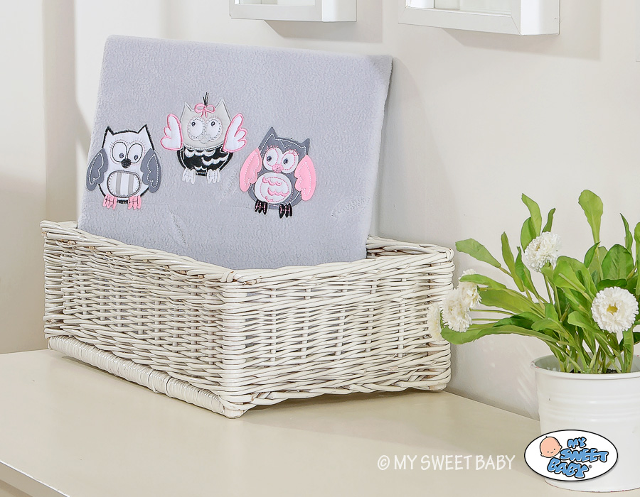 Stubenwagen » Bettwäsche für Babys » Bettwäsche für Babybett EULEN BIGI ZIBI & ADELE » Polar - Fleece Decke » Polar Fleece Babydecke - Eulen Bigi Zibi & Adele - grau-rosa
