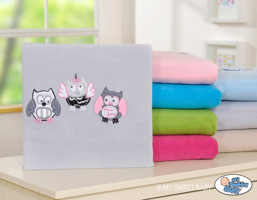 Grau-rosa Adele Zibi Bigi Eulen Babydecke Fleece Polar