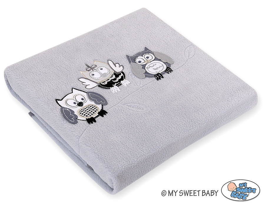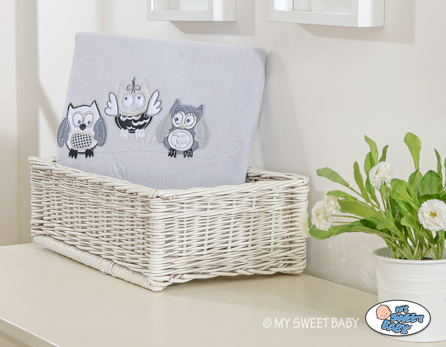 Stubenwagen » Bettwäsche für Babys » Bettwäsche für Babybett EULEN BIGI ZIBI & ADELE » Polar - Fleece Decke » Polar Fleece Babydecke - Eulen Bigi Zibi & Adele - grau-schwarz