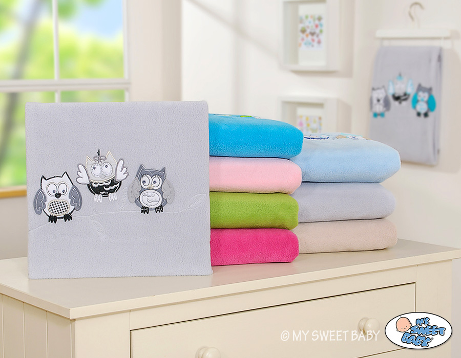Polar Fleece Babydecke - Eulen Bigi Zibi & Adele - grau-schwarz