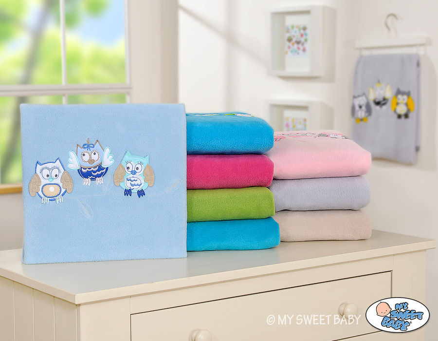 Sehr weiche, kuschelige und gemütliche Fleece-Decke mit schönen Stickereien und Applikationen! Perfekt für den Trolley, Kinderbett, oder Autositz in vielen Farben.
