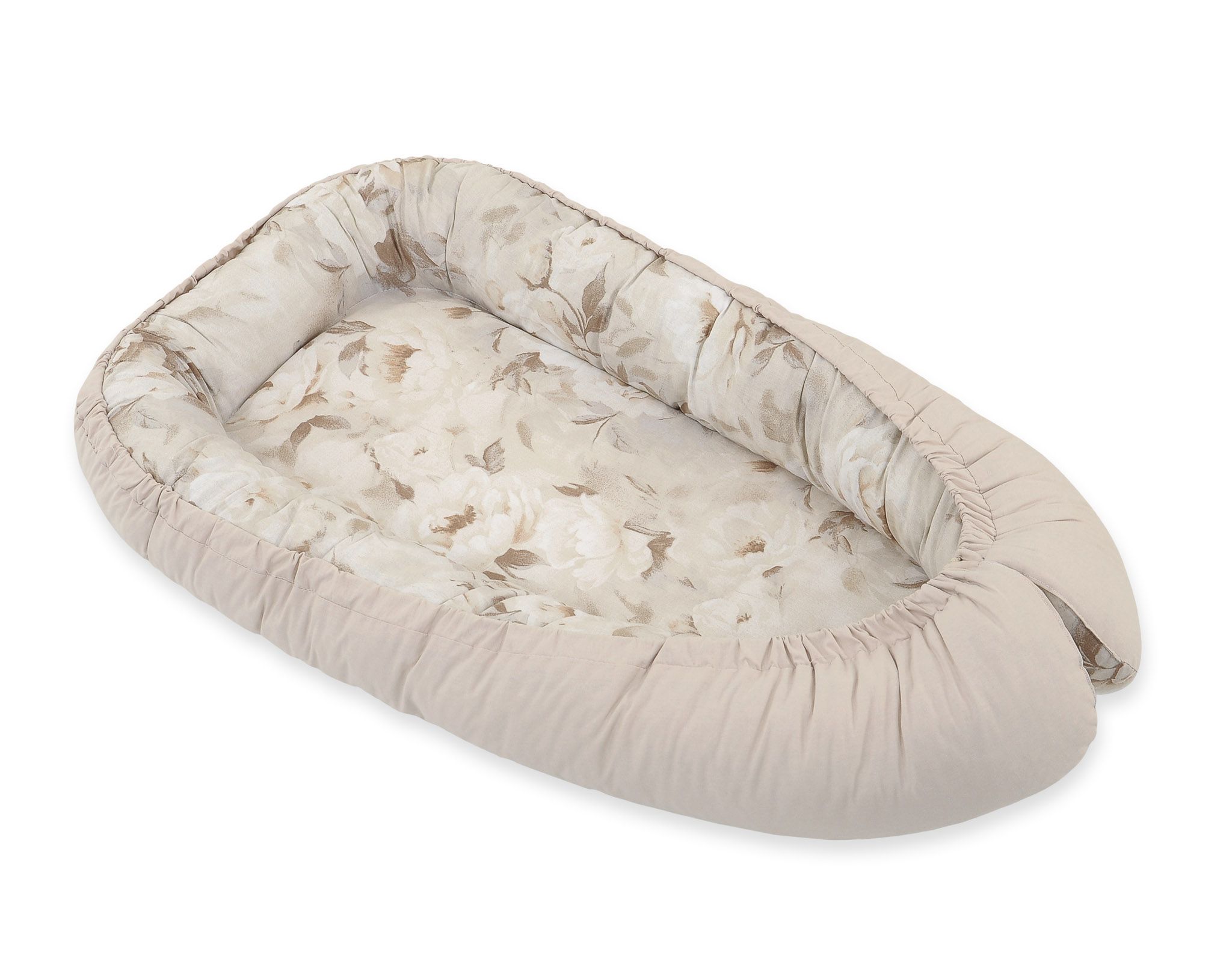 Der Baby-Cocoon ist eine großartige Lösung für die ersten Lebensmonate des Babys. Der Kokon ist ein Nest zum Schlafen, er ist kleiner und gemütlicher als ein Kinderbett, das Baby fühlt sich darin sicher wie in Mamas Bauch. Der Kokon soll den Raum um das Baby herum begrenzen, damit es sich allmählich von der Embryonalstellung in eine aufrechte Position bewegen kann. Wenn das Baby nach der Geburt sofort im Bettchen schläft, kann es sich unwohl fühlen, weil es sich plötzlich auf zu viel Raum befindet. Die weichen und hohen Ränder des Kokons, die sich um das Baby wickeln, schützen das Baby und dämpfen laute Geräusche, so dass ein ruhiger Schlaf gewährleistet ist.
