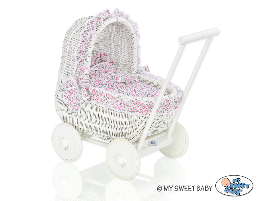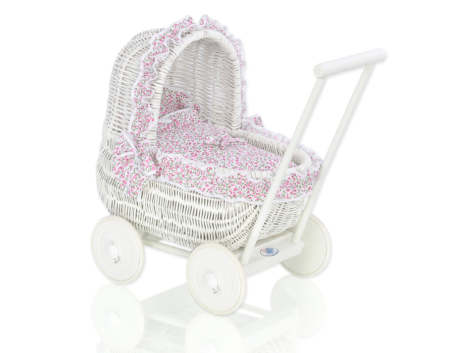 Stubenwagen » Spielzeug Kuscheltiere » Puppenwagen und Spielzeug » Puppenwagen aus Weide » Puppenwagen aus echtem Holz und Weide Weiß + Bettwäscheset nr 71701-533
