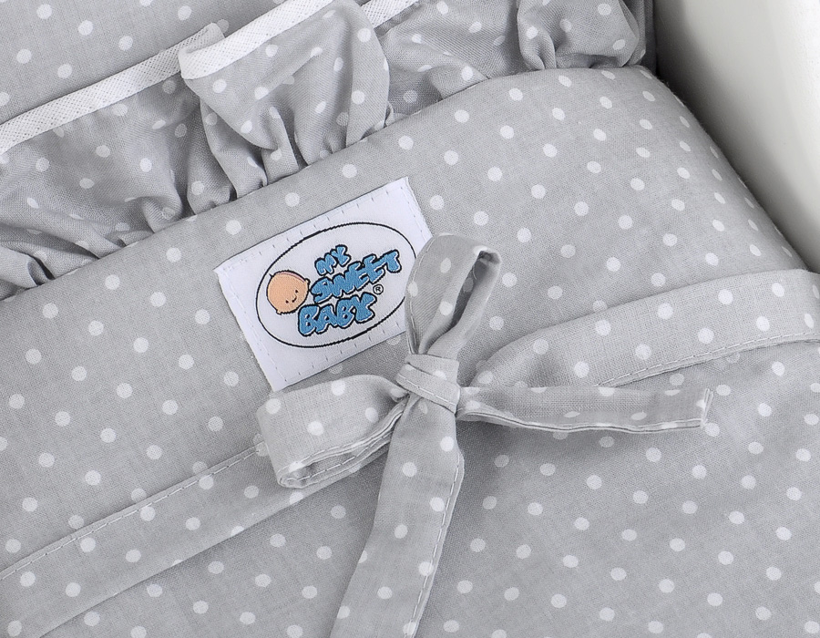 Stubenwagen » Spielzeug Kuscheltiere » Puppenwagen und Spielzeug » Puppenwagen aus Holz » Grau Holz Puppenwagen » Puppenwagen aus Holz mit Bettwäsche Set Mila Weiß Grau