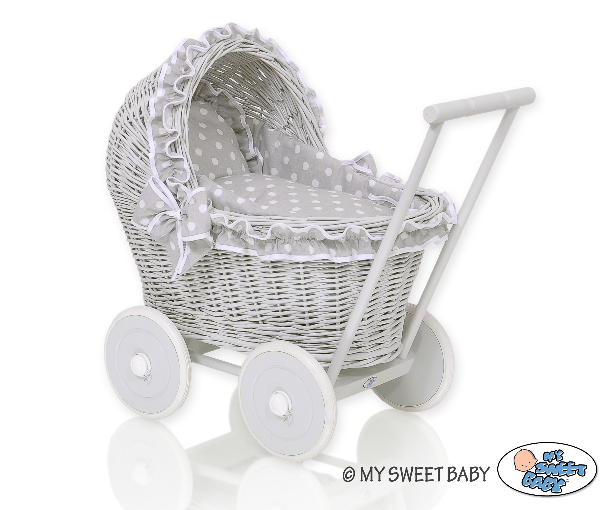 Eine wunderbare Geschenkidee für alle kleinen Mädchen. Sowohl der Korb aus Weide, als auch das Holzuntergestell entstehen in Handarbeit. Die Retropuppenwagen sind in vielen wunderschönen Farben verfügbar. Die sanften Pastelltöne des Puppenwagens ergeben eine wunderschöne Kombination mit den verschiedenen Farben der Bezüge. Dadurch sind unsere Puppenwagen wunderschönes Spielzeug und ein richtiges Hingucker.