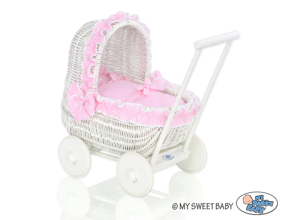 Puppenwagen Korb Weide Weiß Rosa
