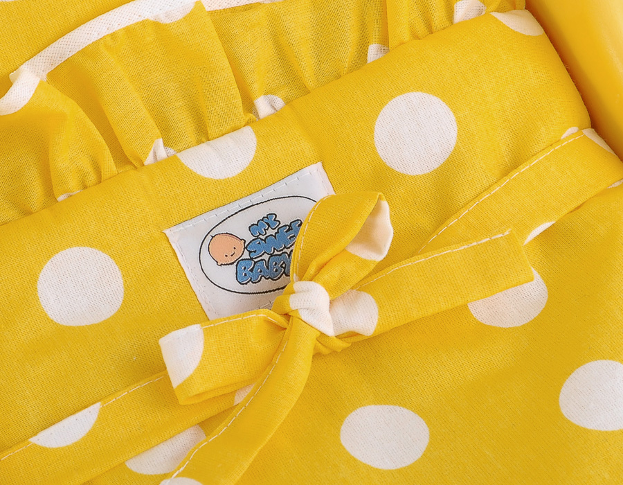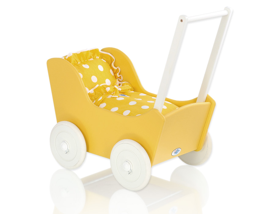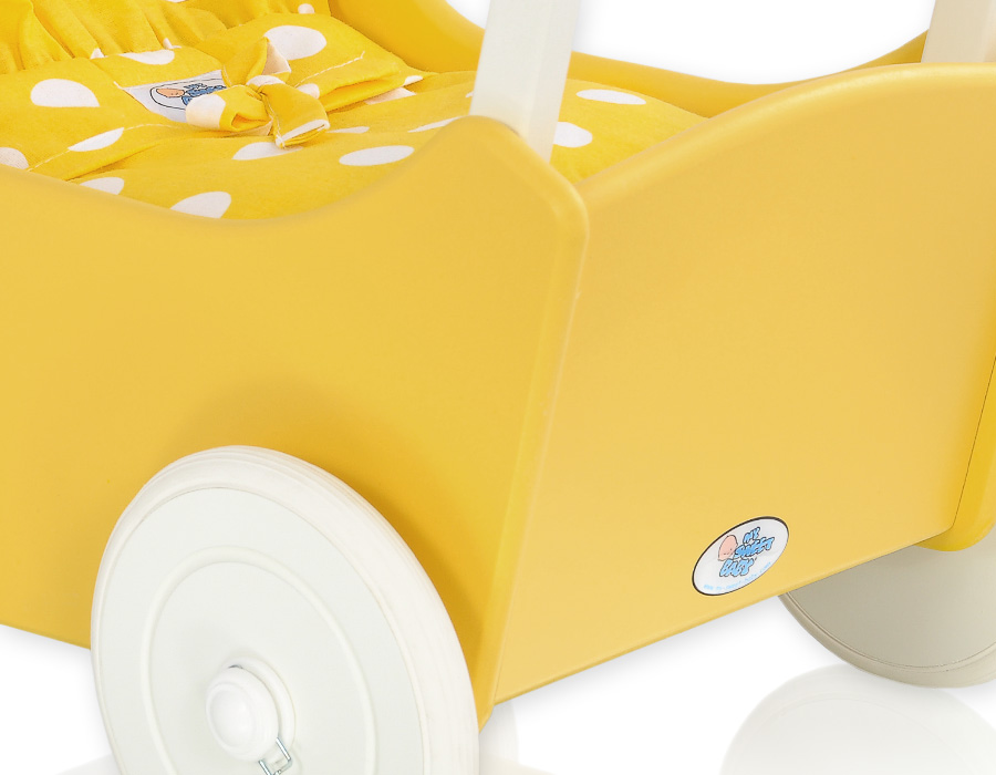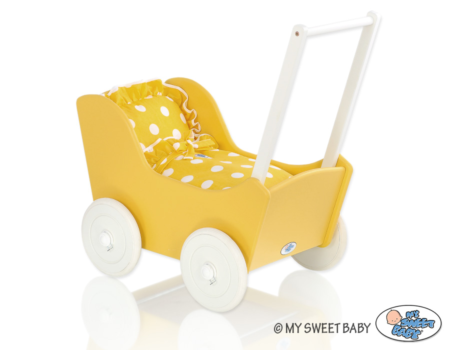 Puppenwagen Mila Gelb Puppen Bettwäsche Gelb mit Weiß-Punktmuster nr 145027-737 Ein wundervoller Spiel - Puppenwagen perfekt als Geschenk geeignet.Der Wagen ist aus sicheren Materialien gefertigt.